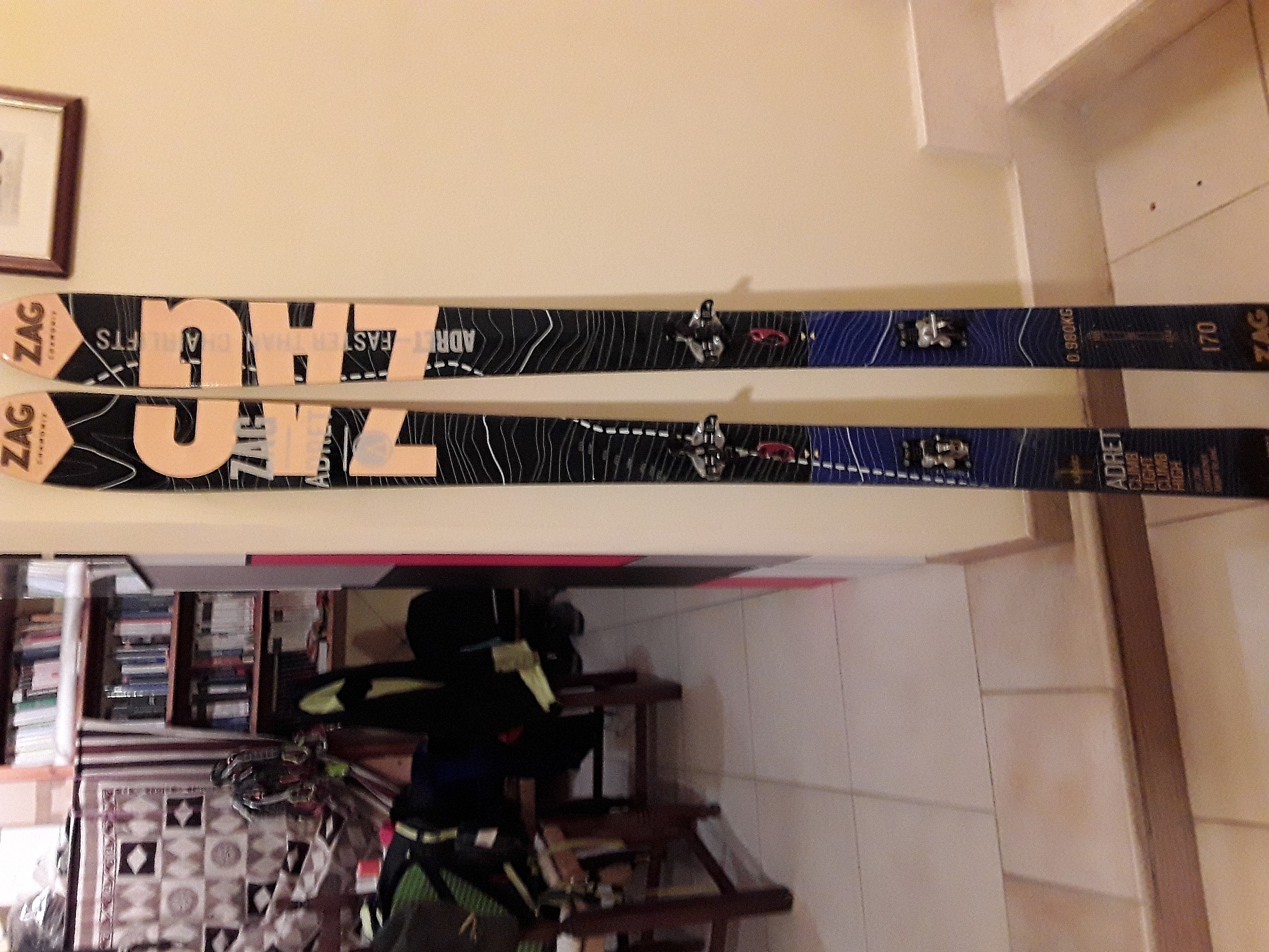 Zag Adret 81 fixation atk SLR release 8 ajusté pour chaussure 303mm et plaque de réglage de +-30mm, conditions: comme neuf, très peu de sorties, avec peaux colltex Ct40 mohair 100% + kit ressorts de 10 DIN et deuxième paire de peaux neuves. Expédition de l’Italie incluse par courrier BRT.