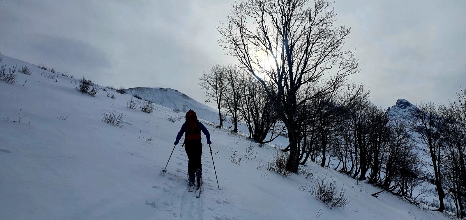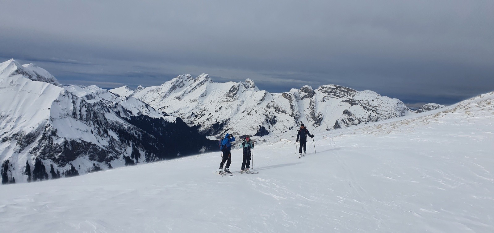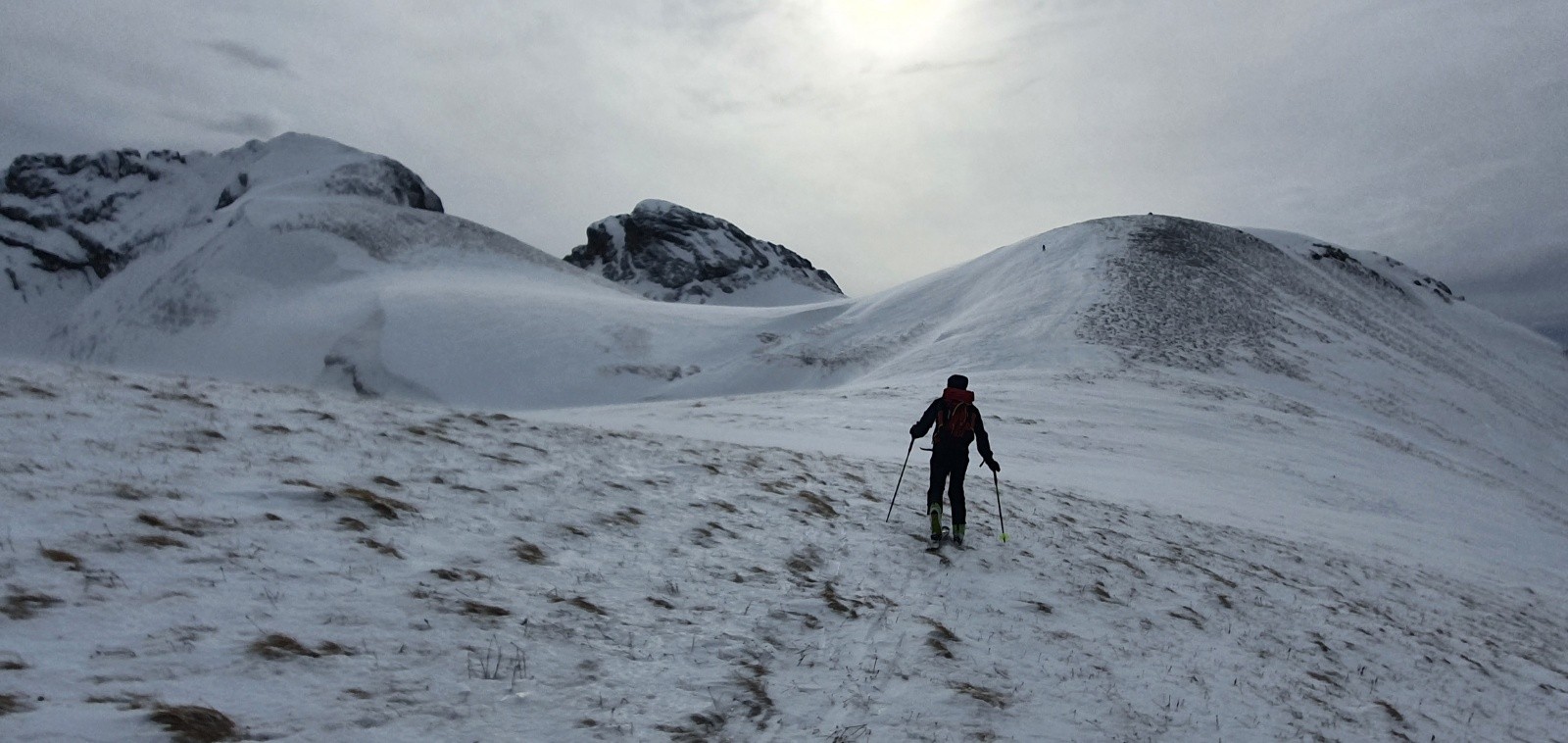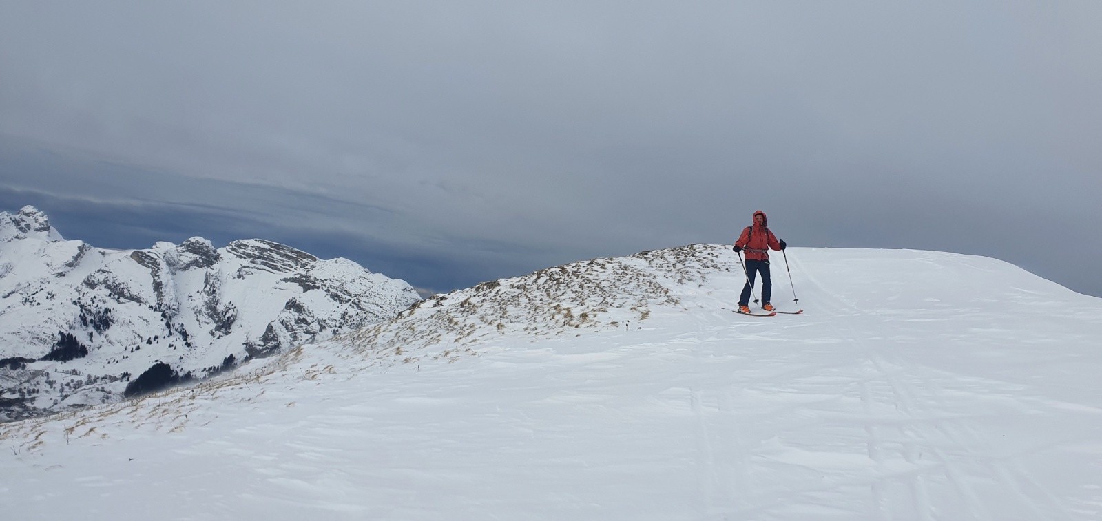 300m a pied sur le chemin; puis ok jusqu a la crete, elle meme tres dégarnie en neige.