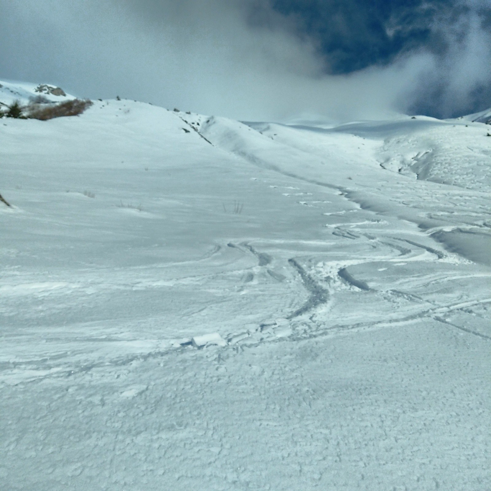 Activité avalancheuse : 2 coulées en sud sous les rochers du mollard des bœufs...elles coupent la trace de montée