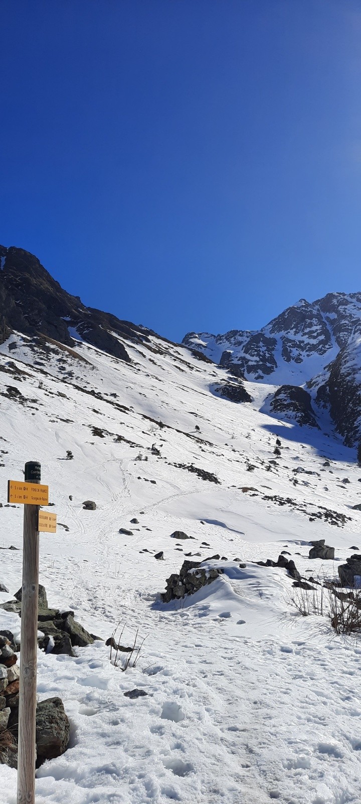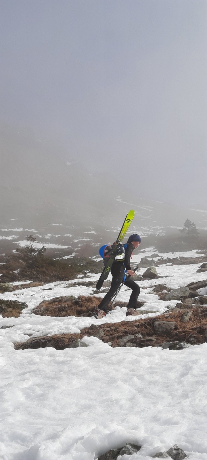 Itinéraire suivi :itinéraire classique, portage long dans la foret jusqu'au gite, belle neige froide retrouvée au dessus de la marmottane