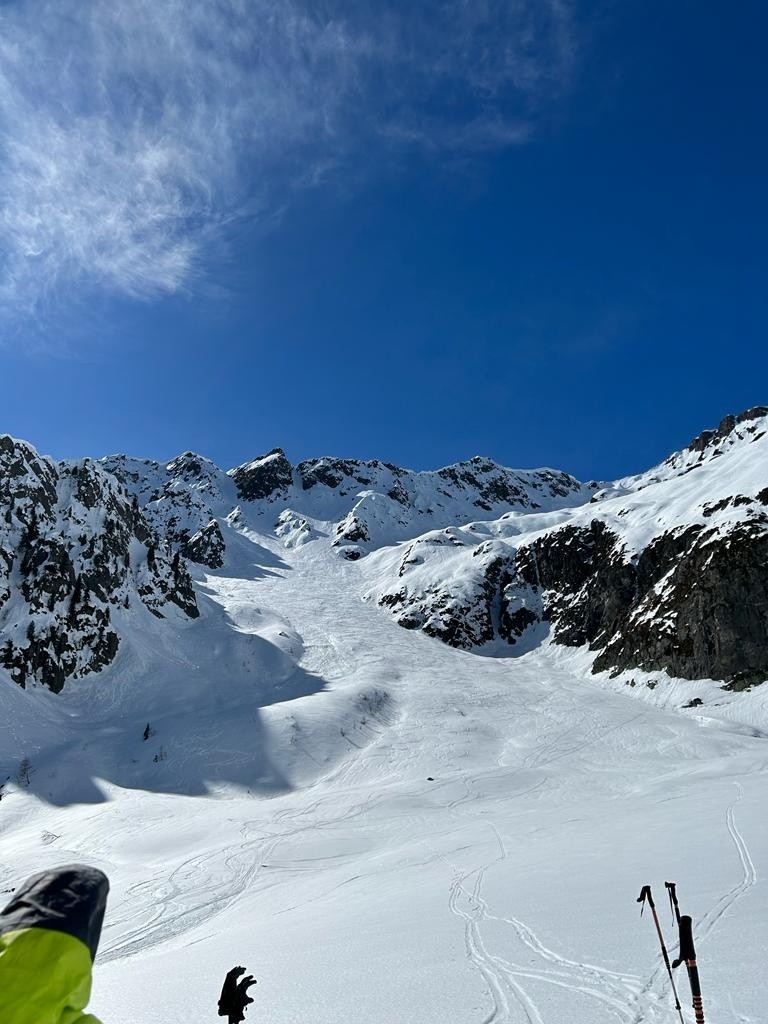 Conditions pour le ski : moyennes on trouve de tout vers le lac c' est très bon poudre, dans le couloir carton difficile à skier et printemps sur le bas
