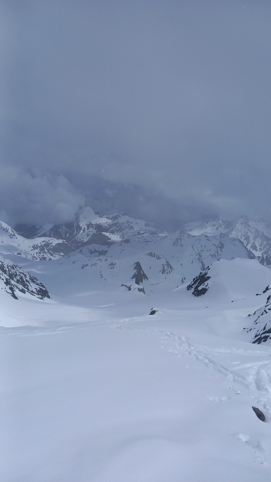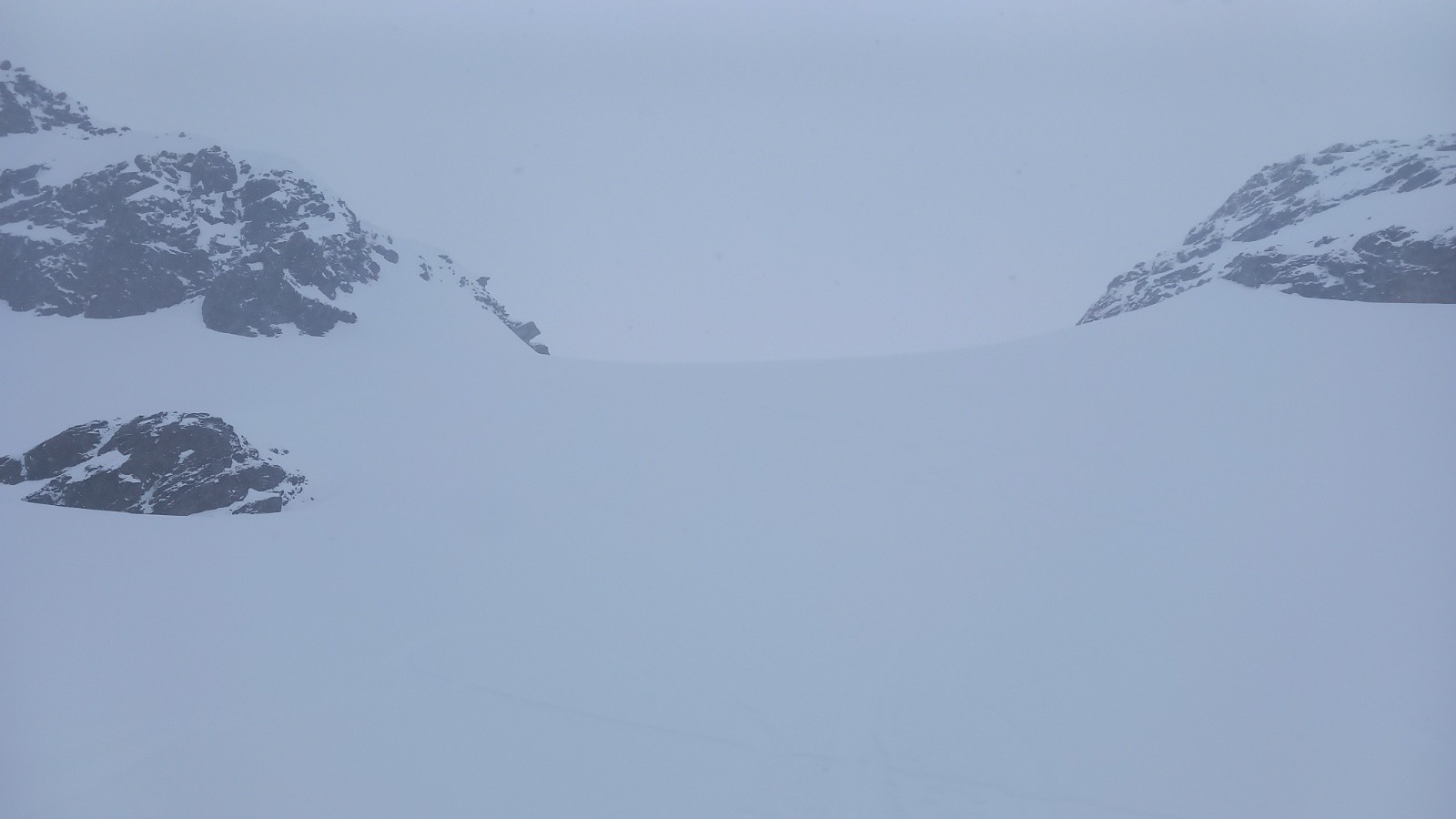 À partir du col de Thorens, nous avons été ralentis par le jour blanc et une neige de plus en plus mouillée !