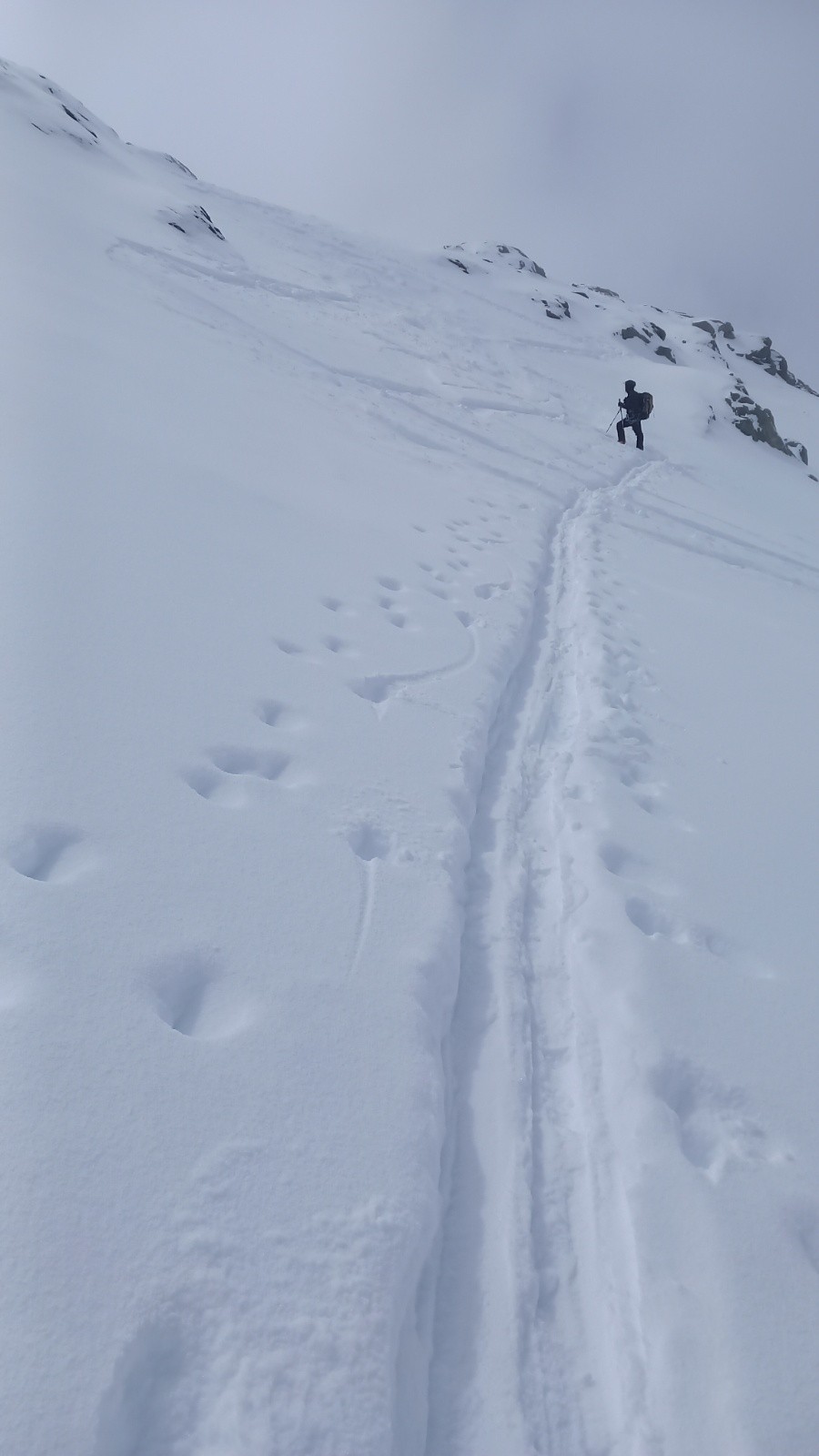 Le mur avant le Col de Gebroulaz passait bien malgré quelques dérapages causés par la poudreuse sur une neige dure.