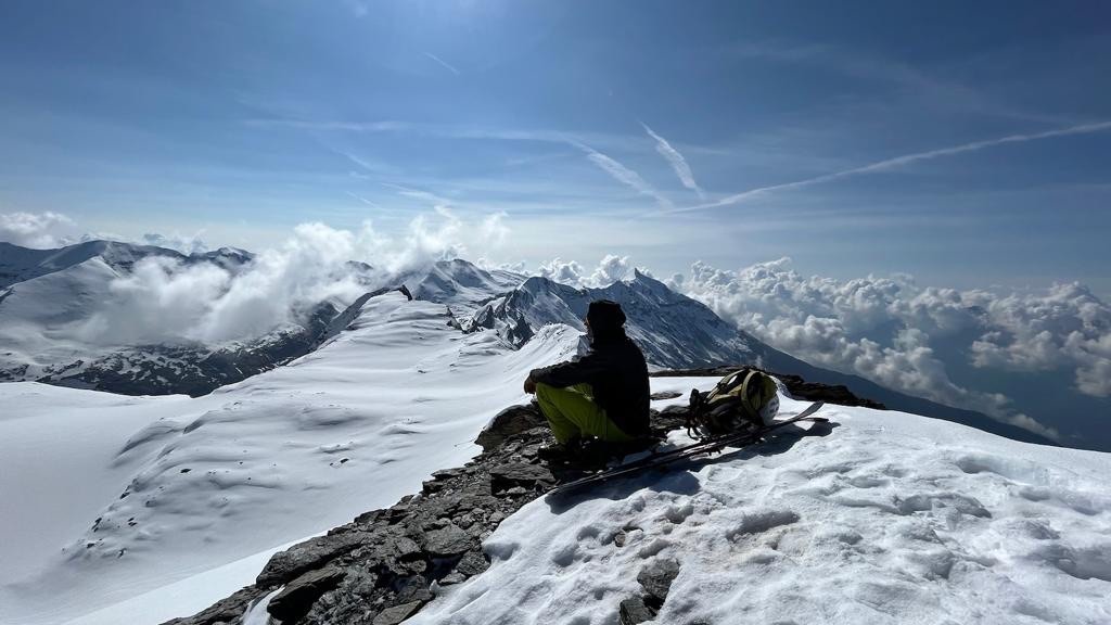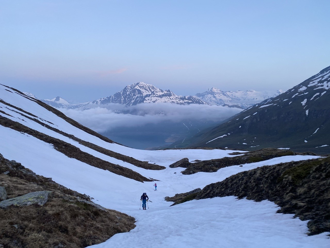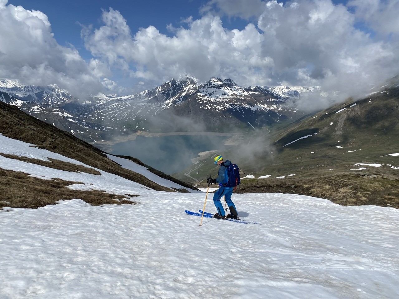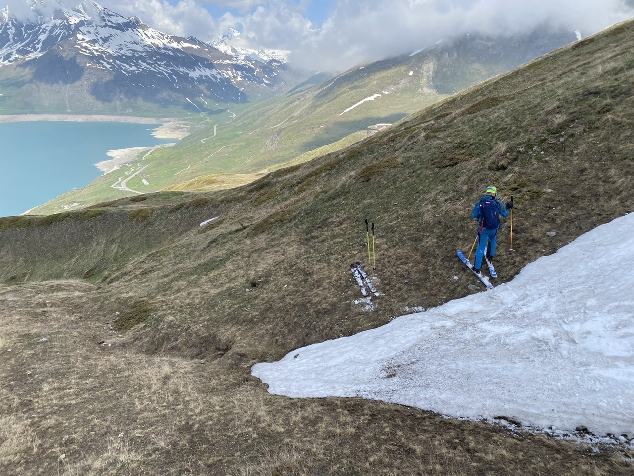 Conditions pour le ski : plutôt abimé / boulettes gelées dans la partie médiane, mais en louvoyant on arrive à se tenir principalement sur des parties lisses qui transforme