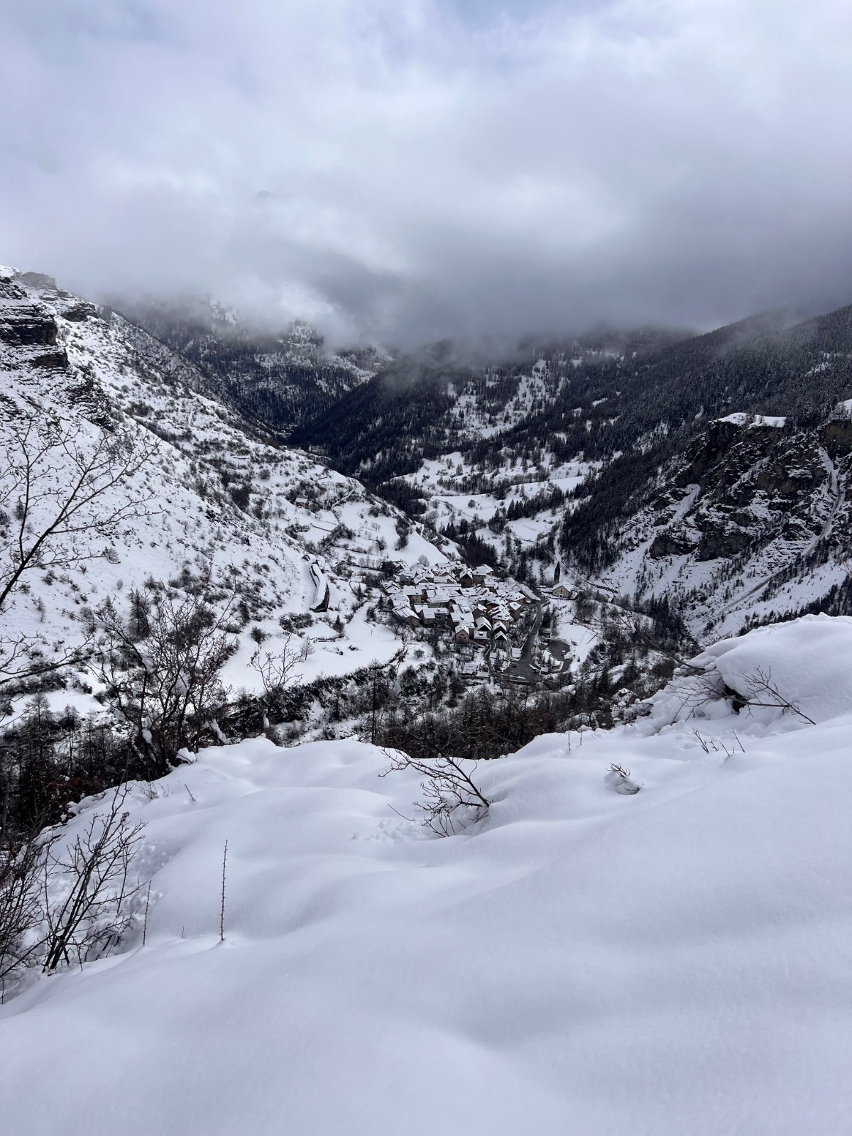 Le pire sera l’arrivée sur la route pas damée qui descend au village aucune trace ça colle à mort obligé de pousser sur les bâtons jusqu’à l’arrivée, c’était presque plus physique que la montée :)