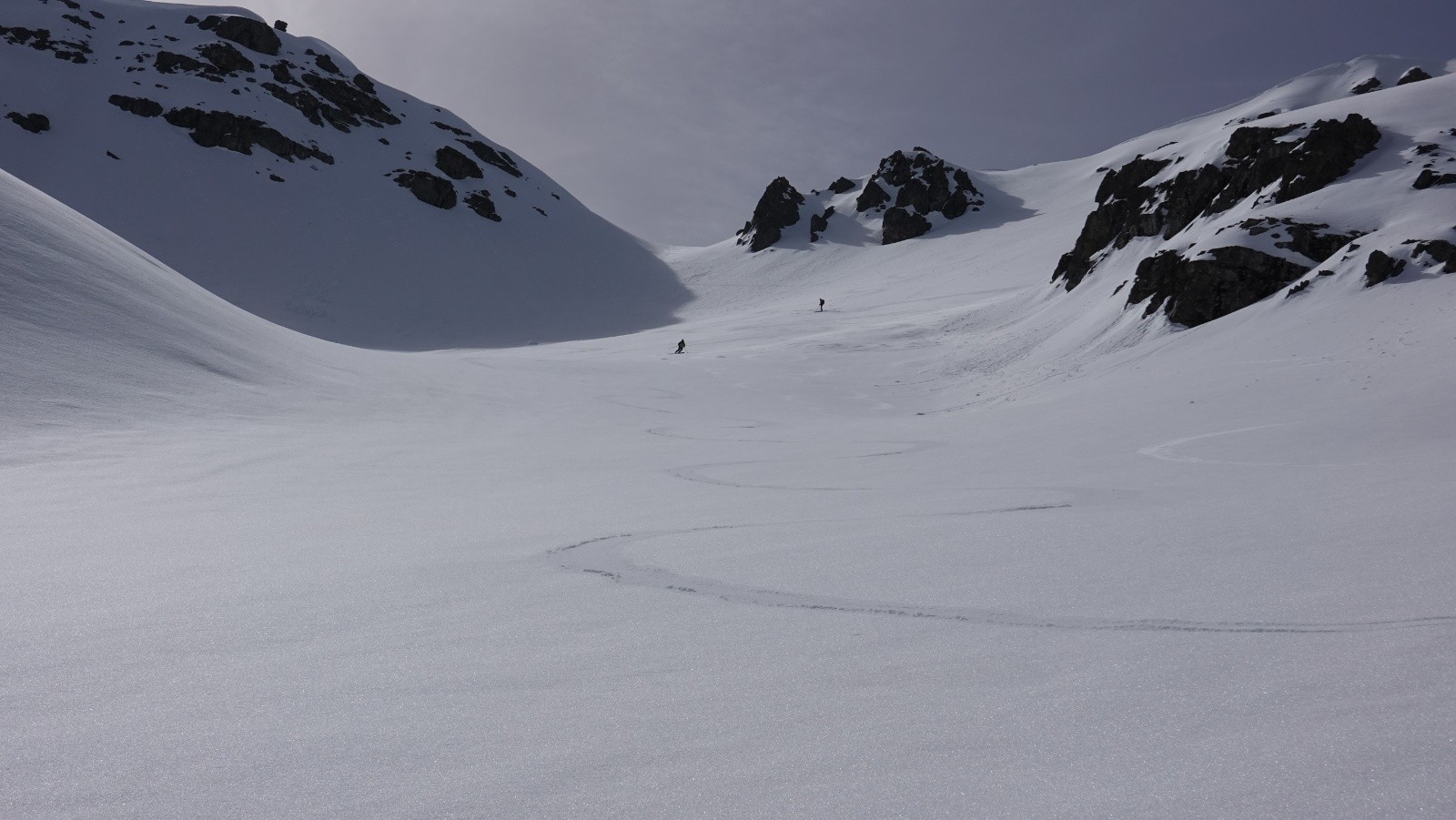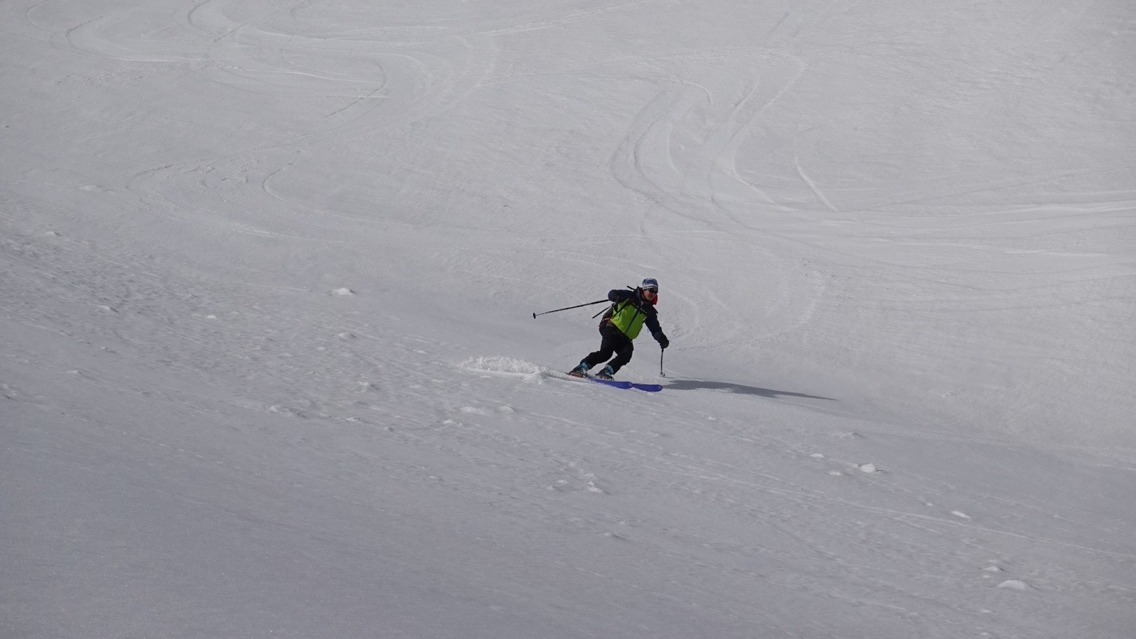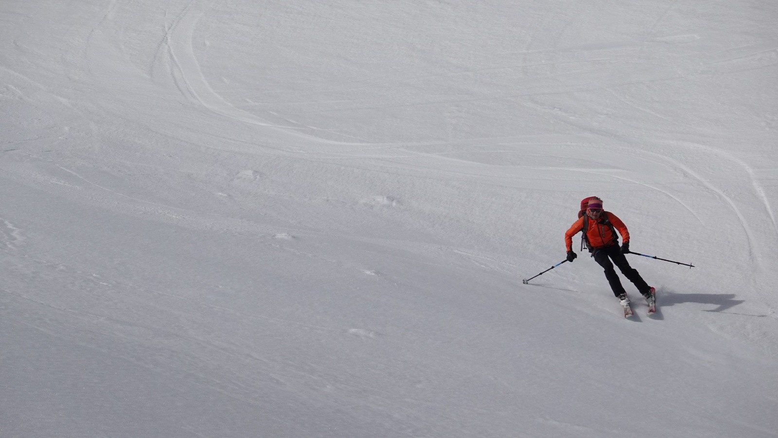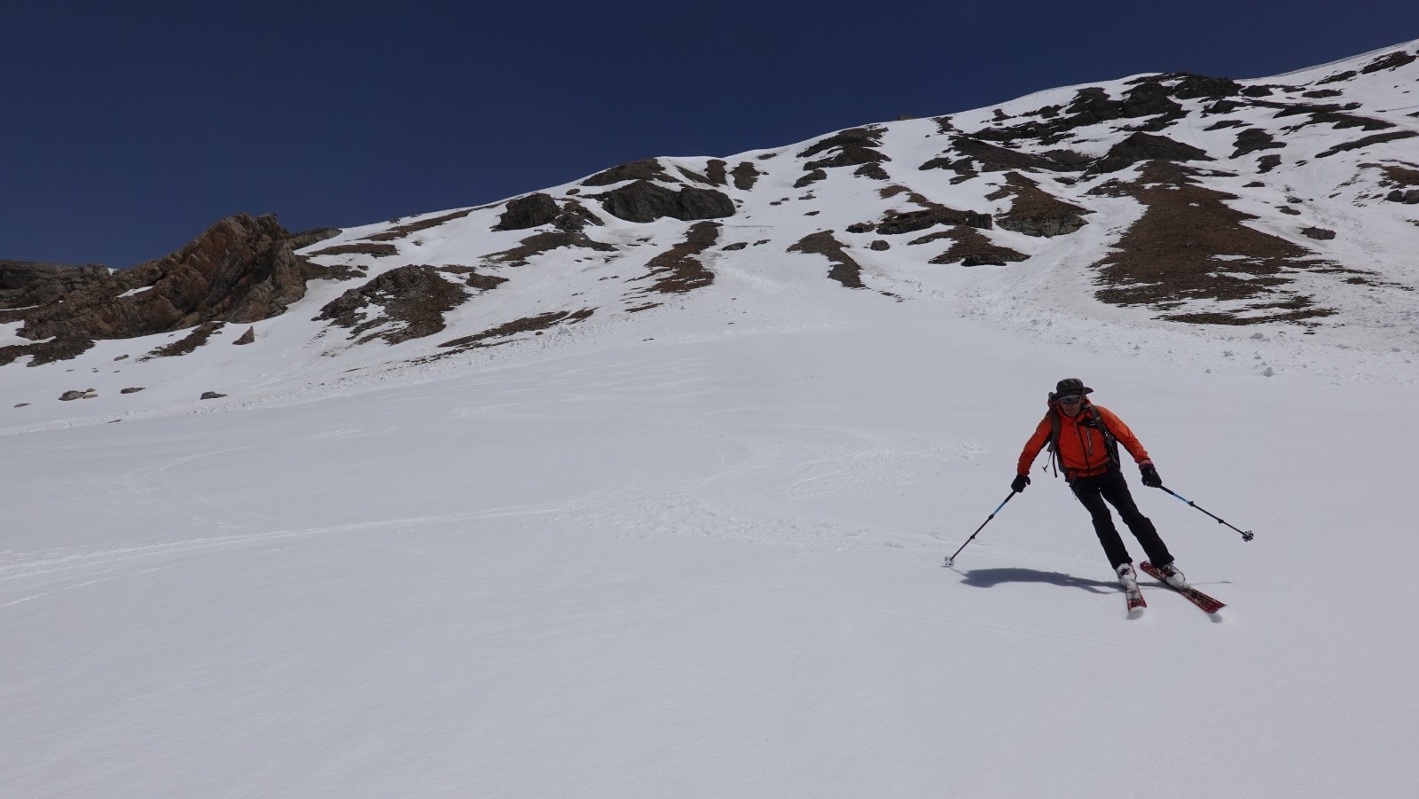 Conditions pour le ski : Bon regel et moquette rase dans la descente de la Cime de Pelousette puis moquette à point dans la descente de la Cime de Voga plus molle sous 2500m. Moquette encore en orientation Ouest sous le Col de Pelouse.