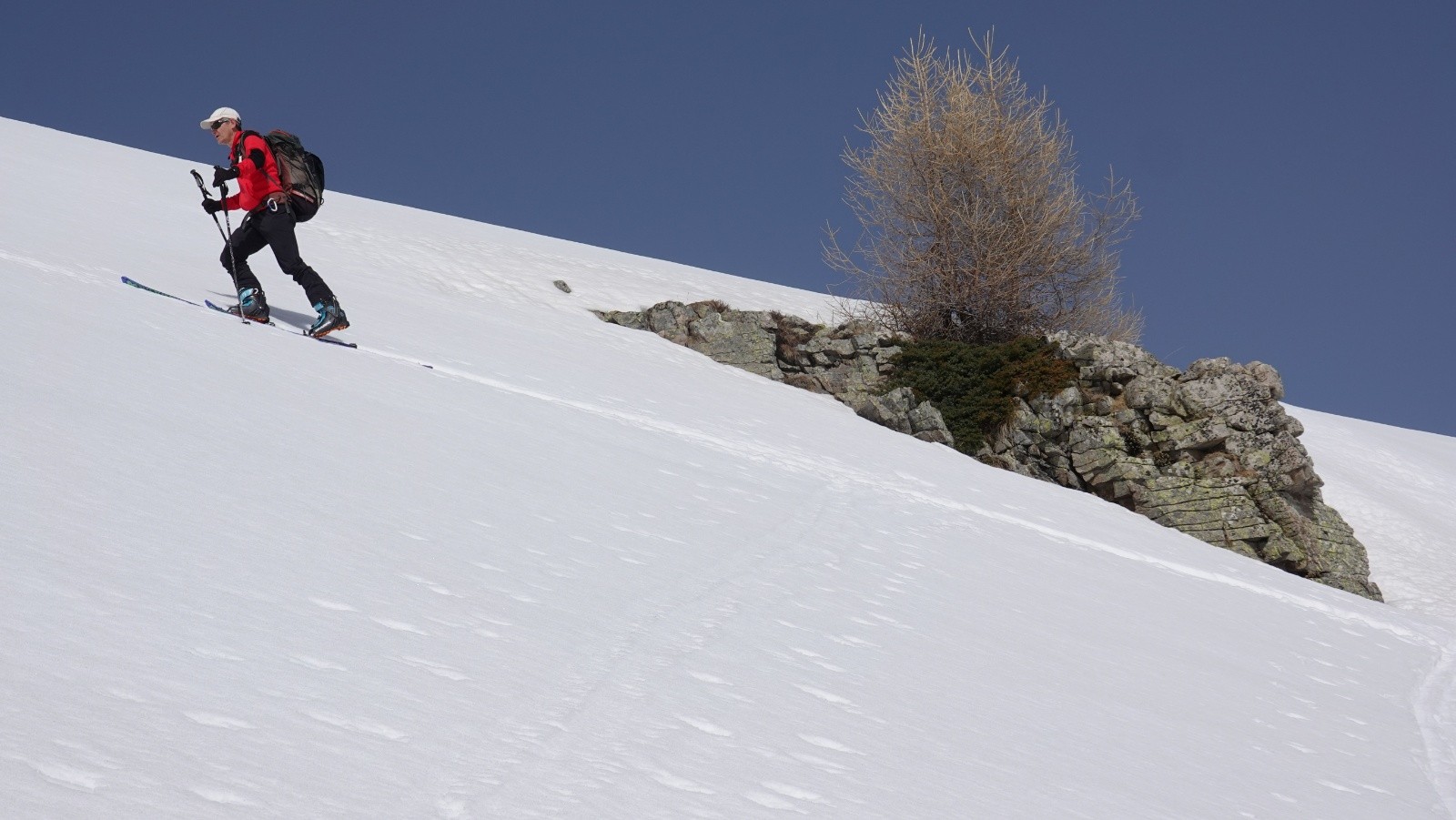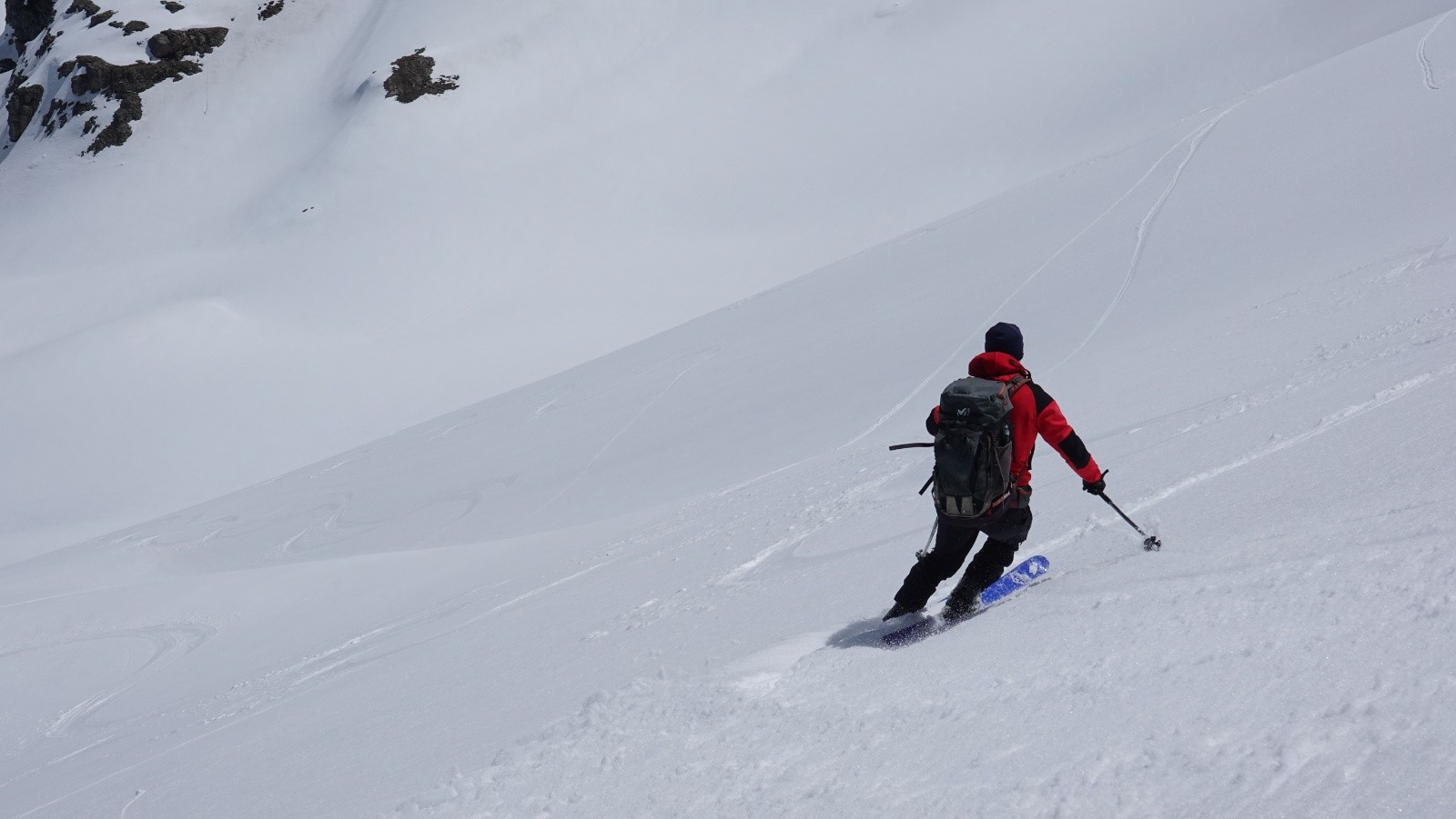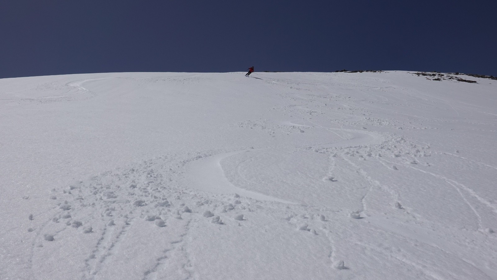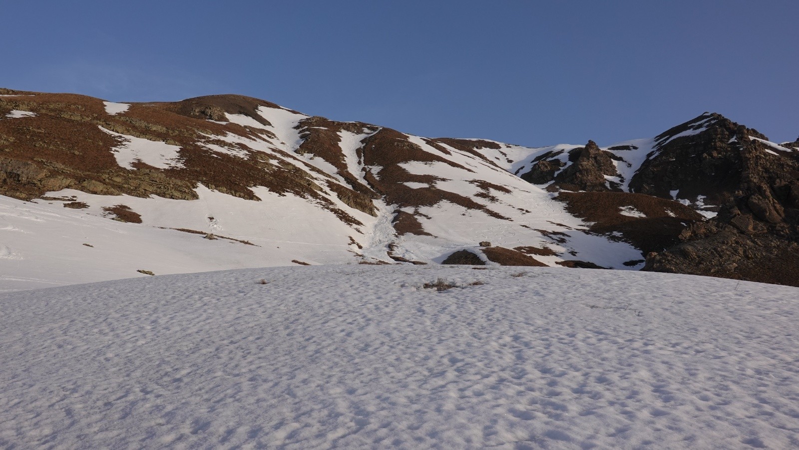 Conditions pour le ski : Bon regel et moquette rase dans la descente de la Cime de Pelousette puis moquette à point dans la descente de la Cime de Voga plus molle sous 2500m. Moquette encore en orientation Ouest sous le Col de Pelouse.