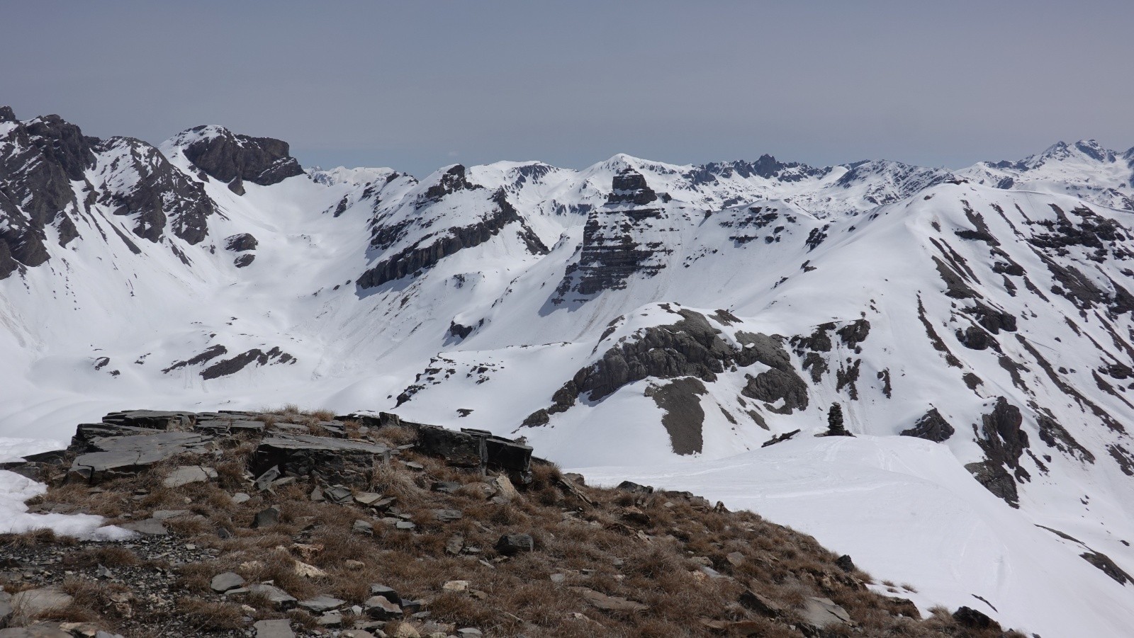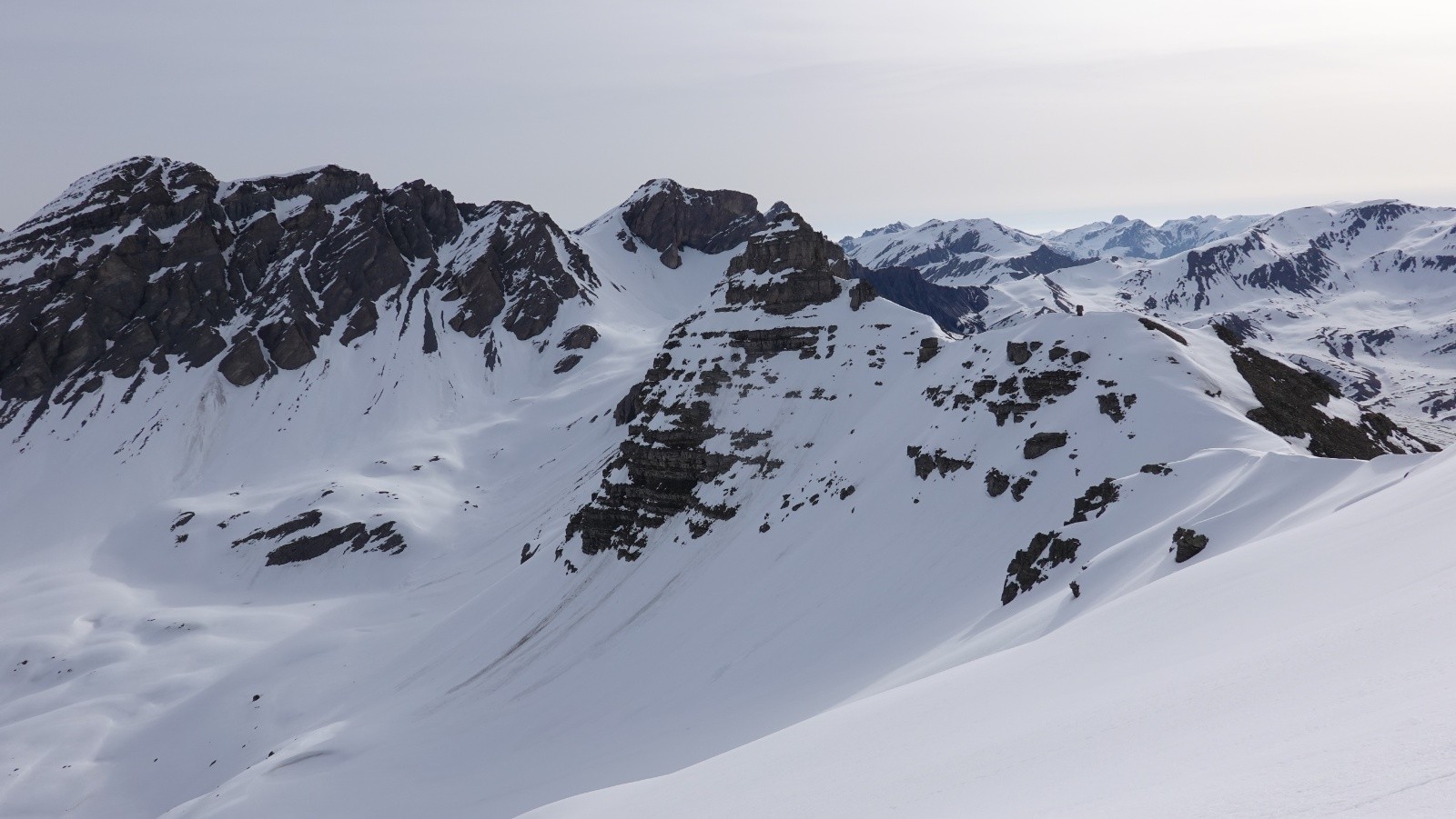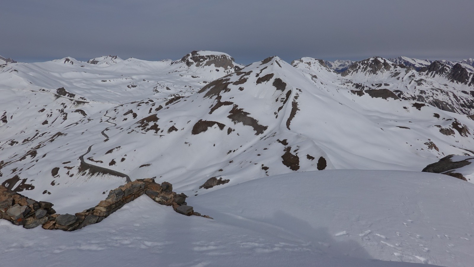 Coup d'œil dans le rétro sur le versant Sud de la Cime de Voga et le Col de pelouse