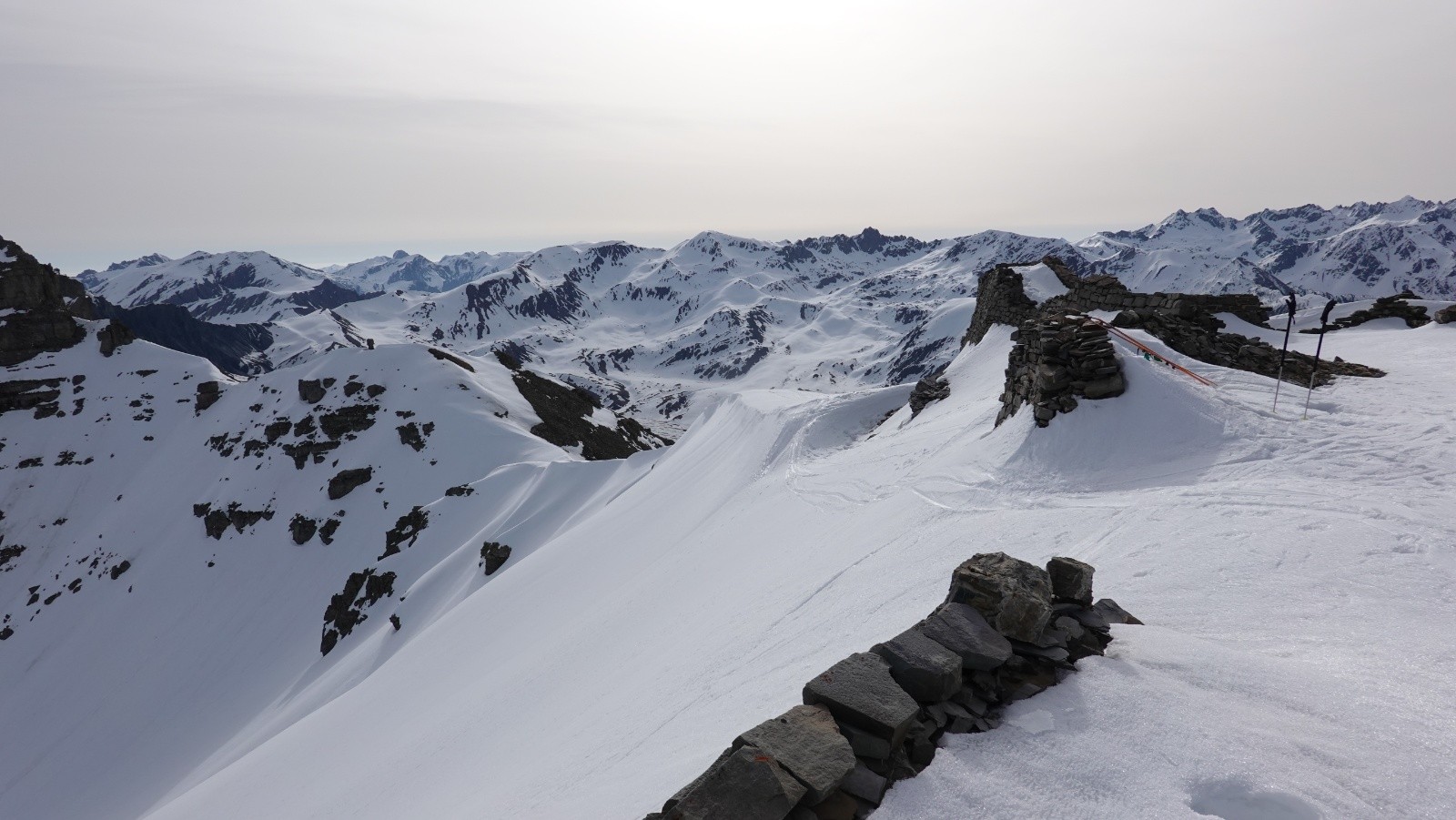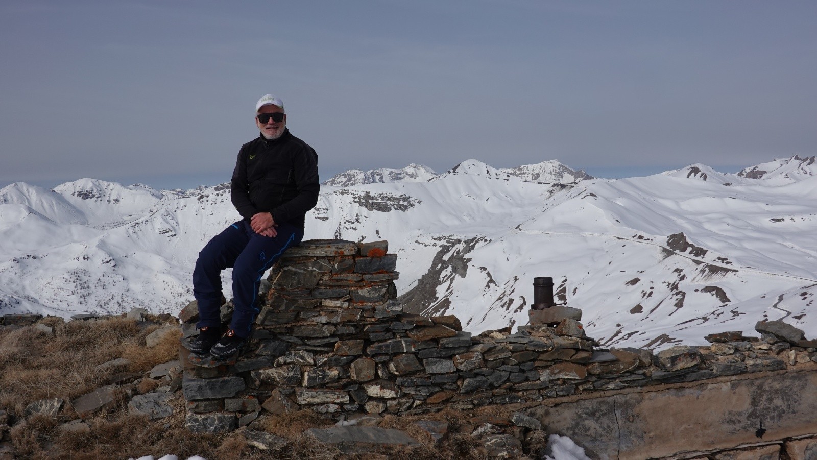 Au sommet de la Cime de Pelousette sous un ciel laiteux