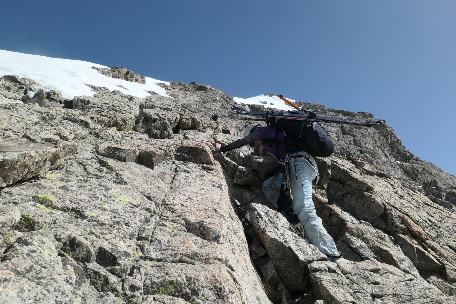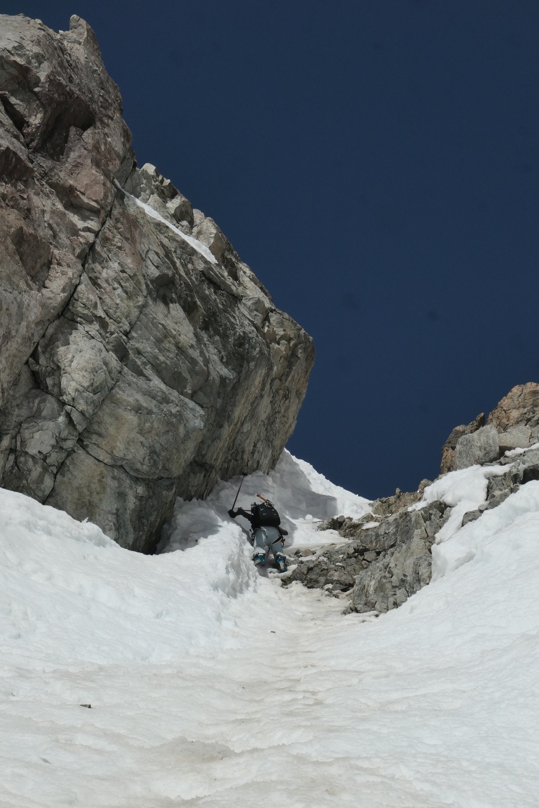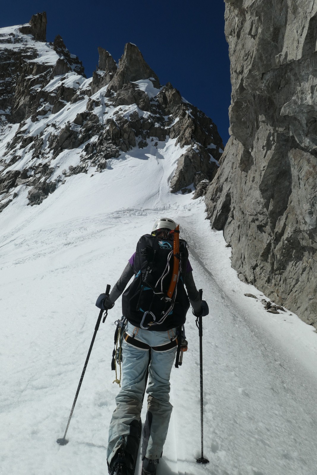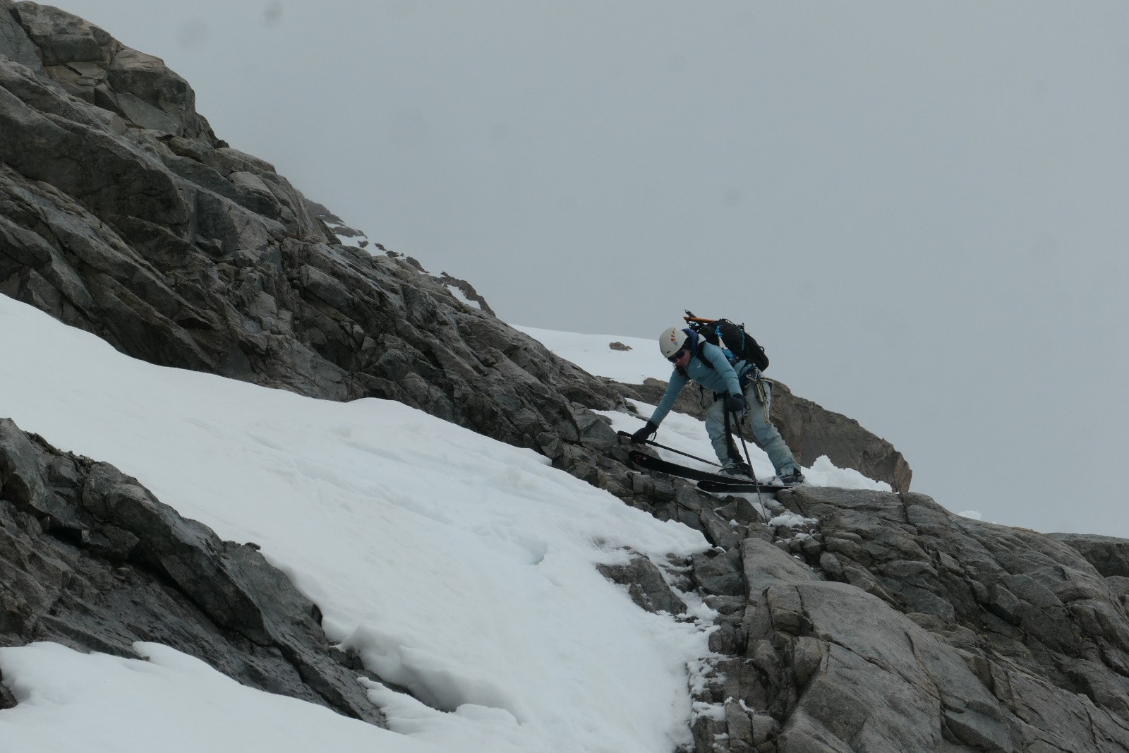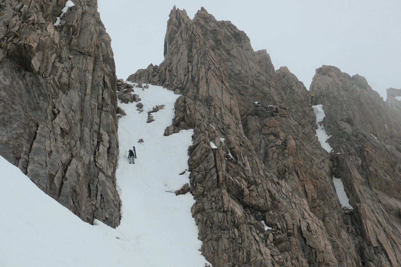 Première difficulté, la gestion de l'horaire : on veut passer la brèche E assez tôt que éviter la surchauffe de la neige et les chutes de pierre. Mais pas trop tôt non plus car on descend SW. La longue traversée d'arête pas si évidente nous aura finalement largement occupé le temps du décaillage!