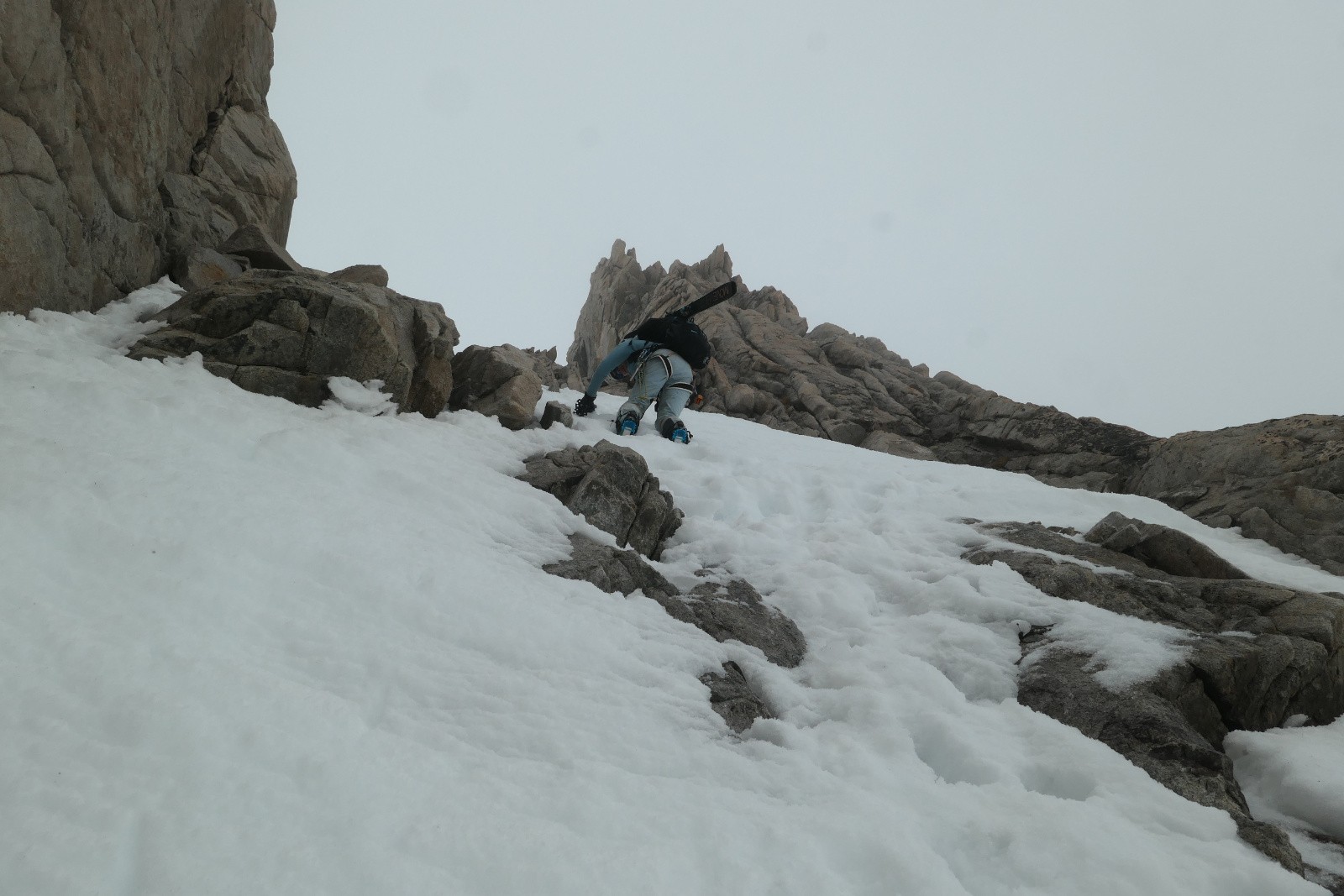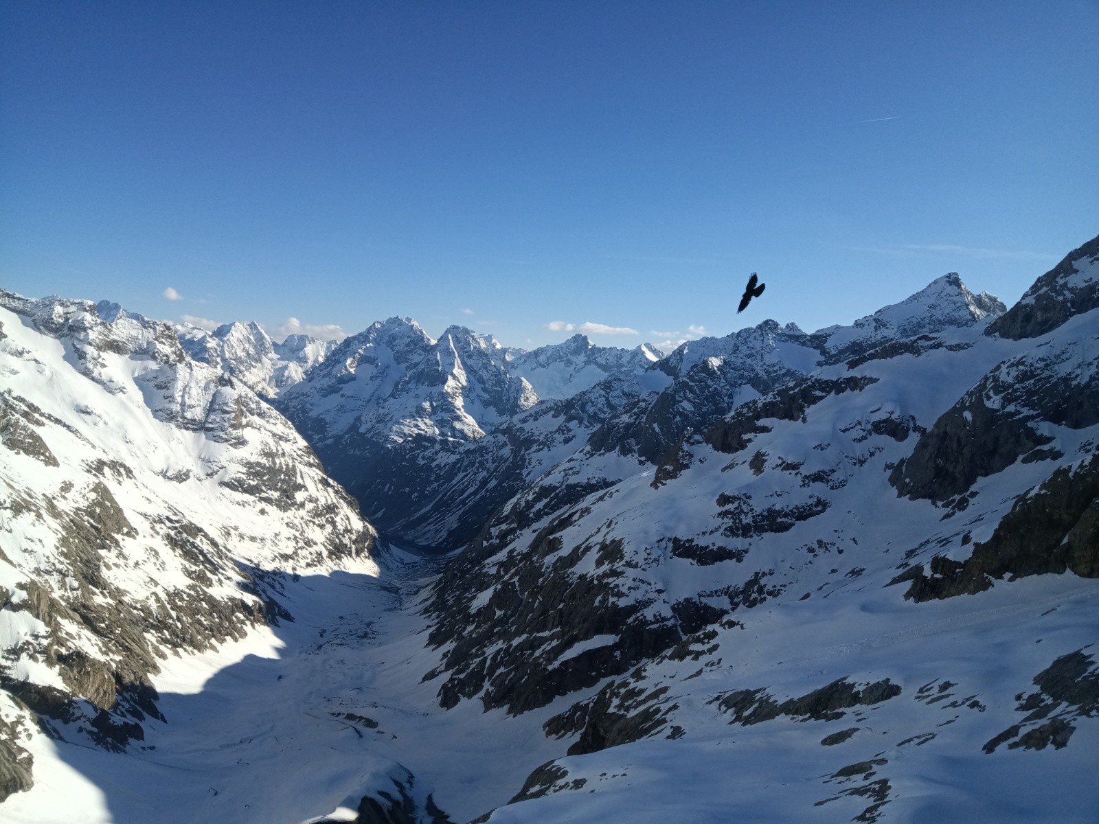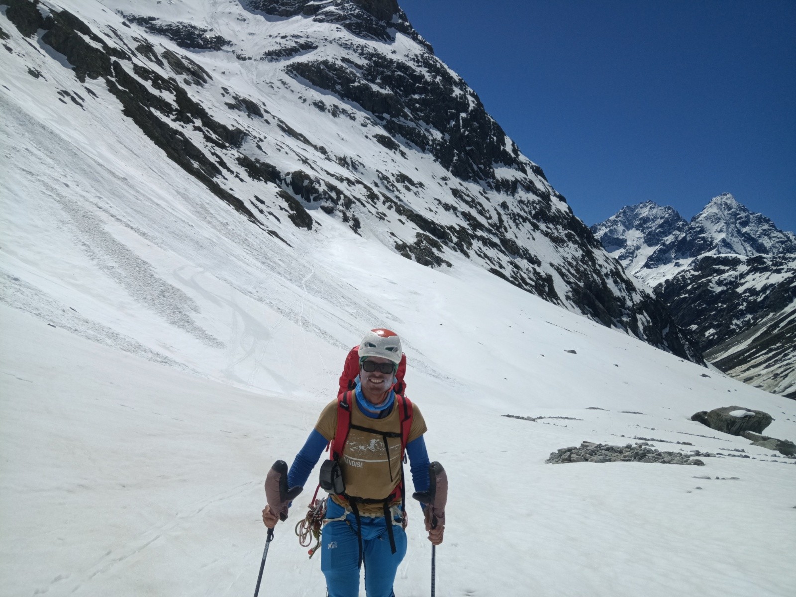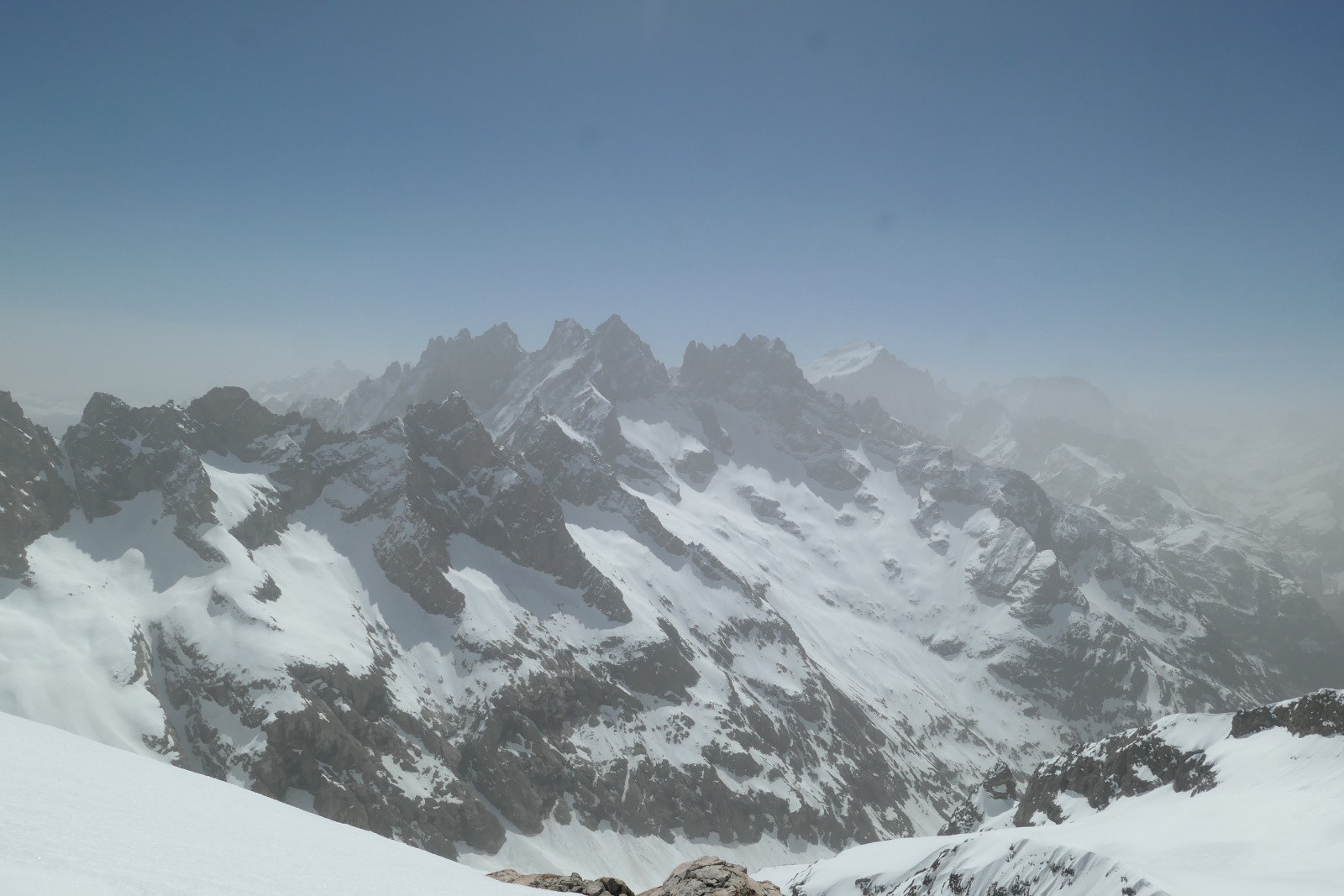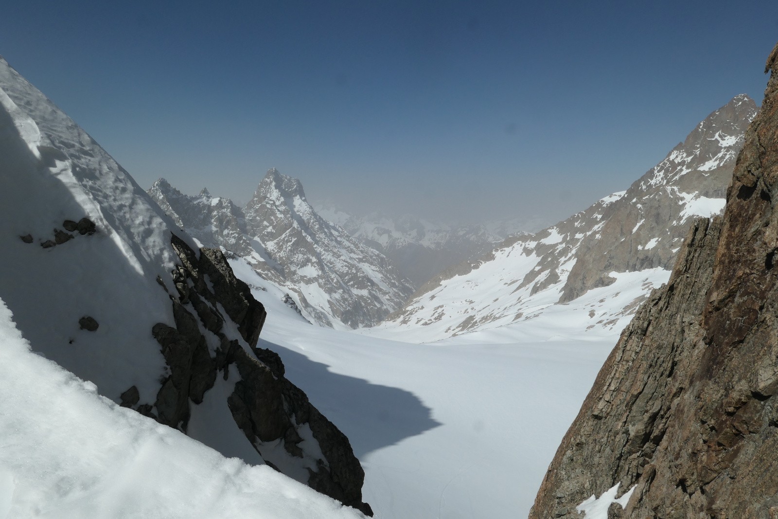 Première difficulté, la gestion de l'horaire : on veut passer la brèche E assez tôt que éviter la surchauffe de la neige et les chutes de pierre. Mais pas trop tôt non plus car on descend SW. La longue traversée d'arête pas si évidente nous aura finalement largement occupé le temps du décaillage!