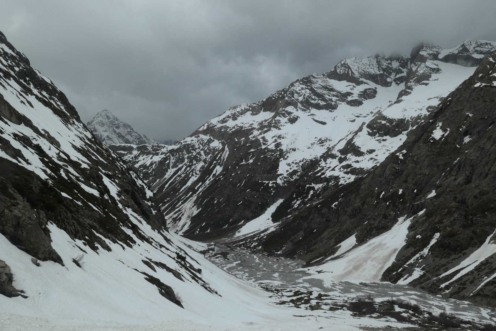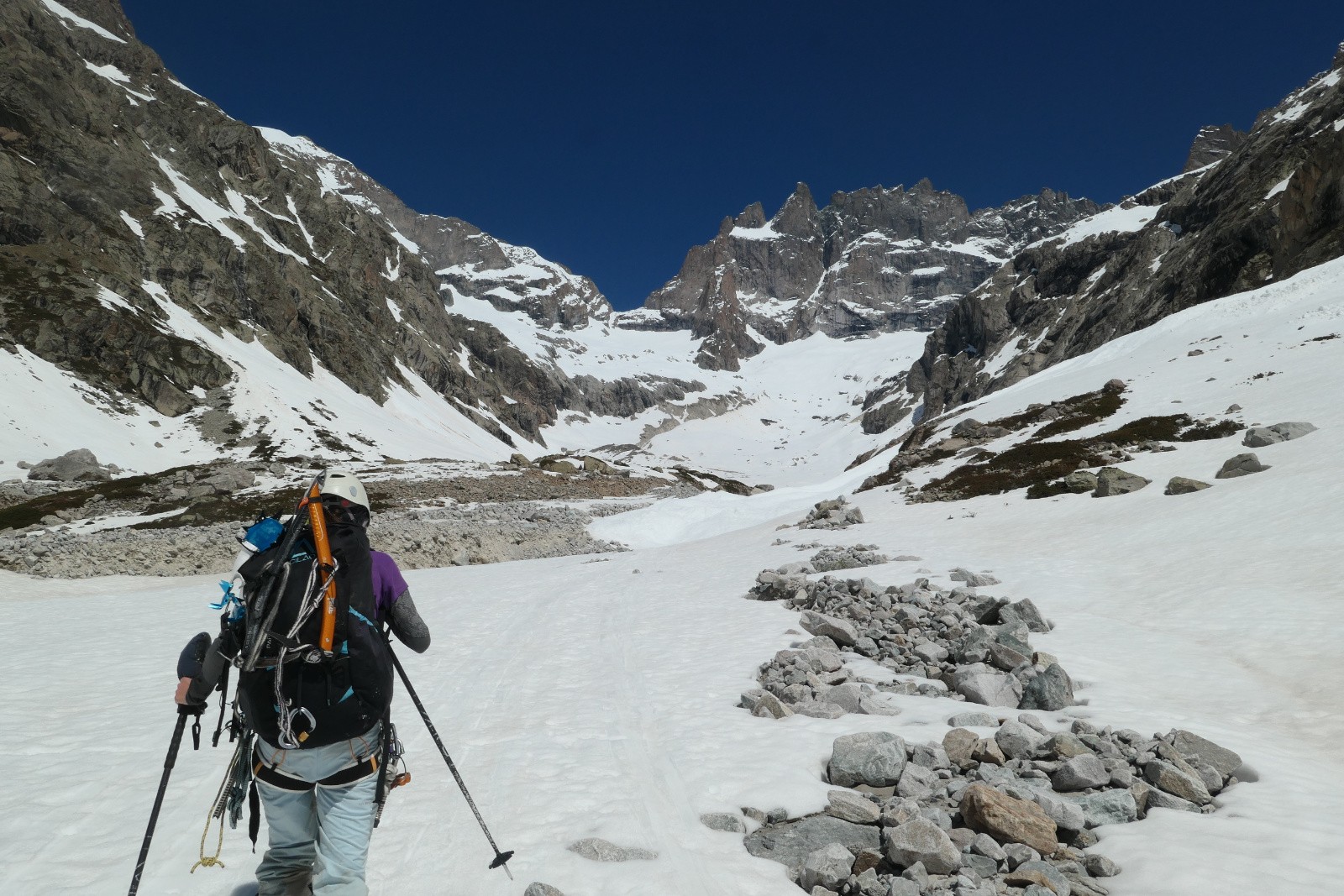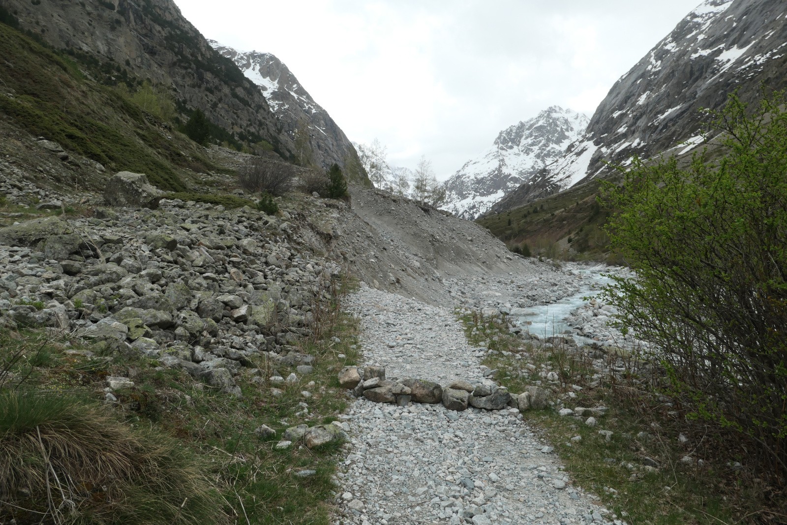 On file vers la Bérarde on se demandant si le torrent des Etançons sera facile ou non à traverser. C'était déjà juste à l'aller alors qu'il n'avait quasiment pas plu...