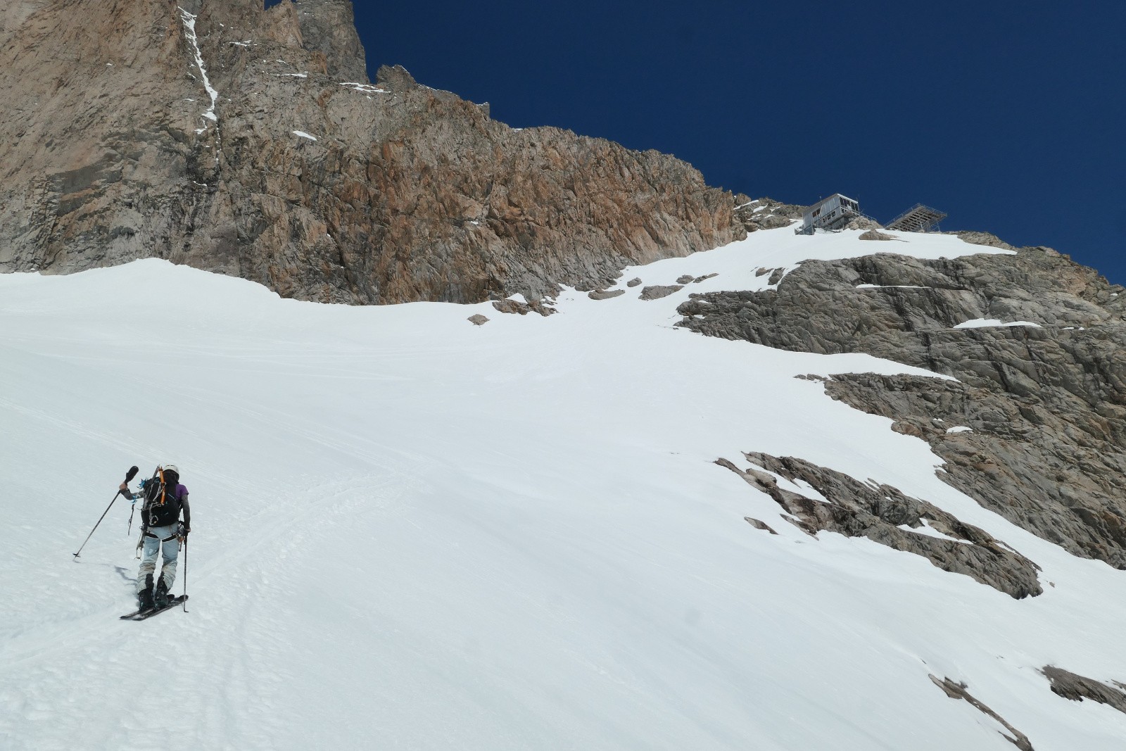 Descente concentrée dans la partie expo pas très lisse et peu décaillée, puis fine moquette ensuite. Bien bonne descente jusqu'au refuge du Châtelleret.