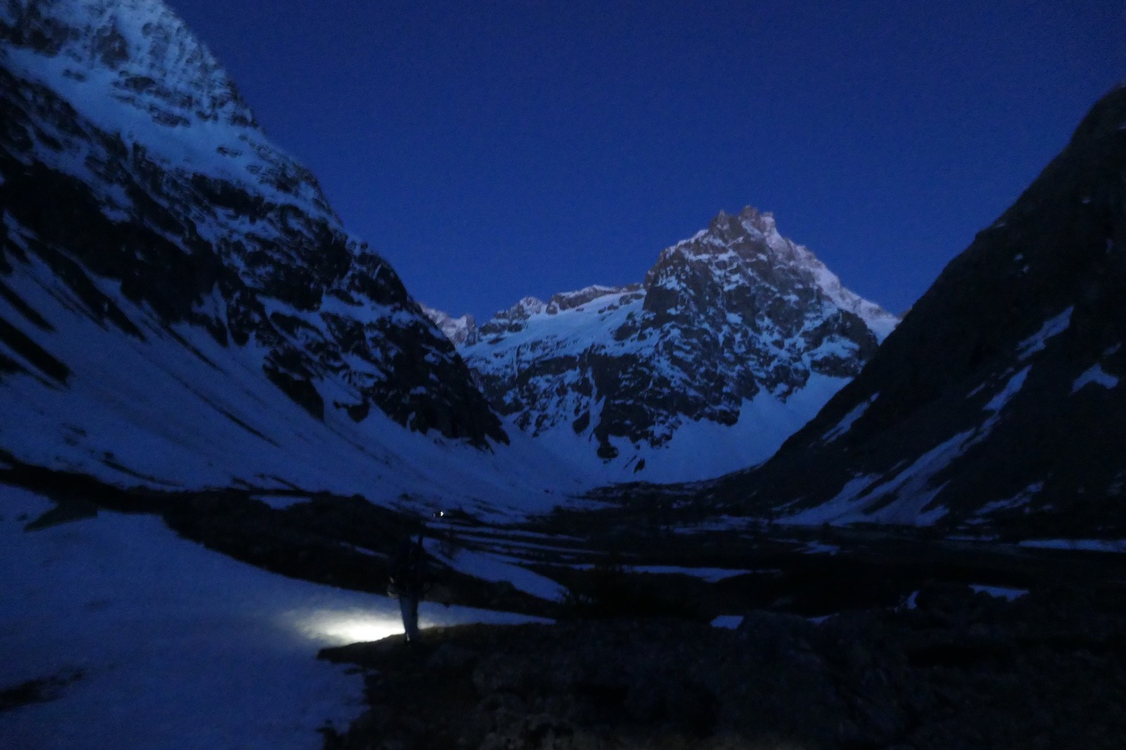 Réveil 3h45 à l'assaut de la Brèche Lory. C'était un monde idéal dans lequel il ne pleut pas des cordes à 2500m d'altitude à 3h45.