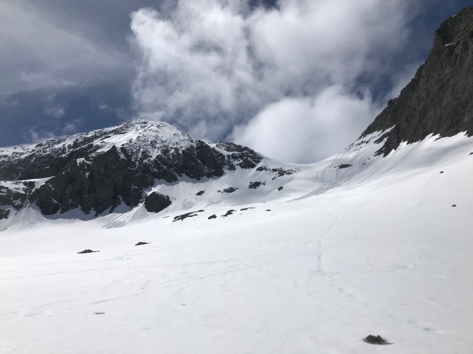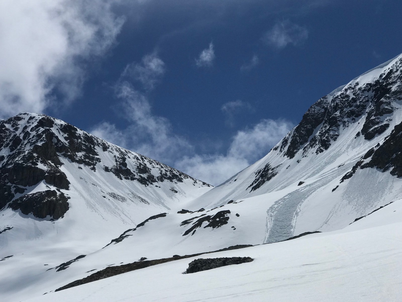 Conditions nivo et activité avalancheuse : Étant absolument seul sur la zone, j’ai préféré interrompre ma montée vers 2360m lorsque j’ai vu des coulées assez volumineuse sur les versant ayant pris le soleil dès le matin. J’ai été déçu par le regel nocturne qui était totalement absent