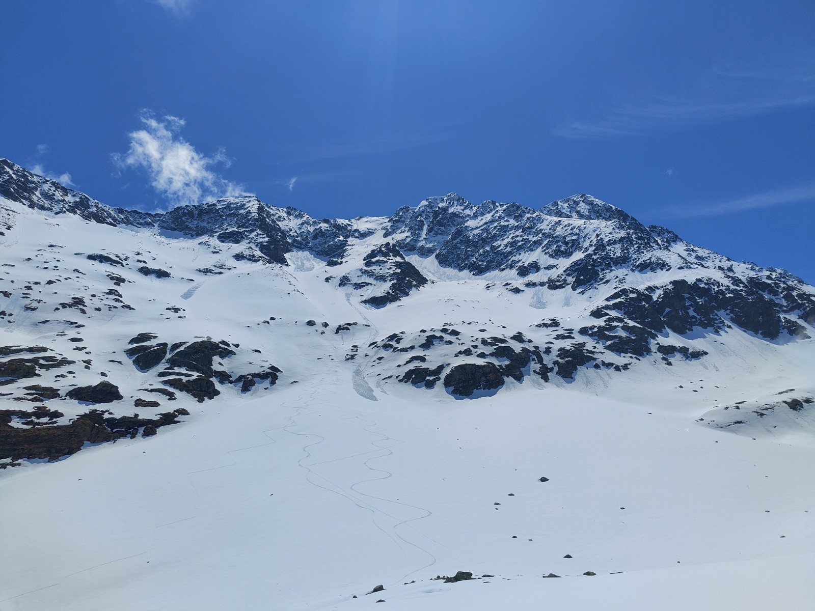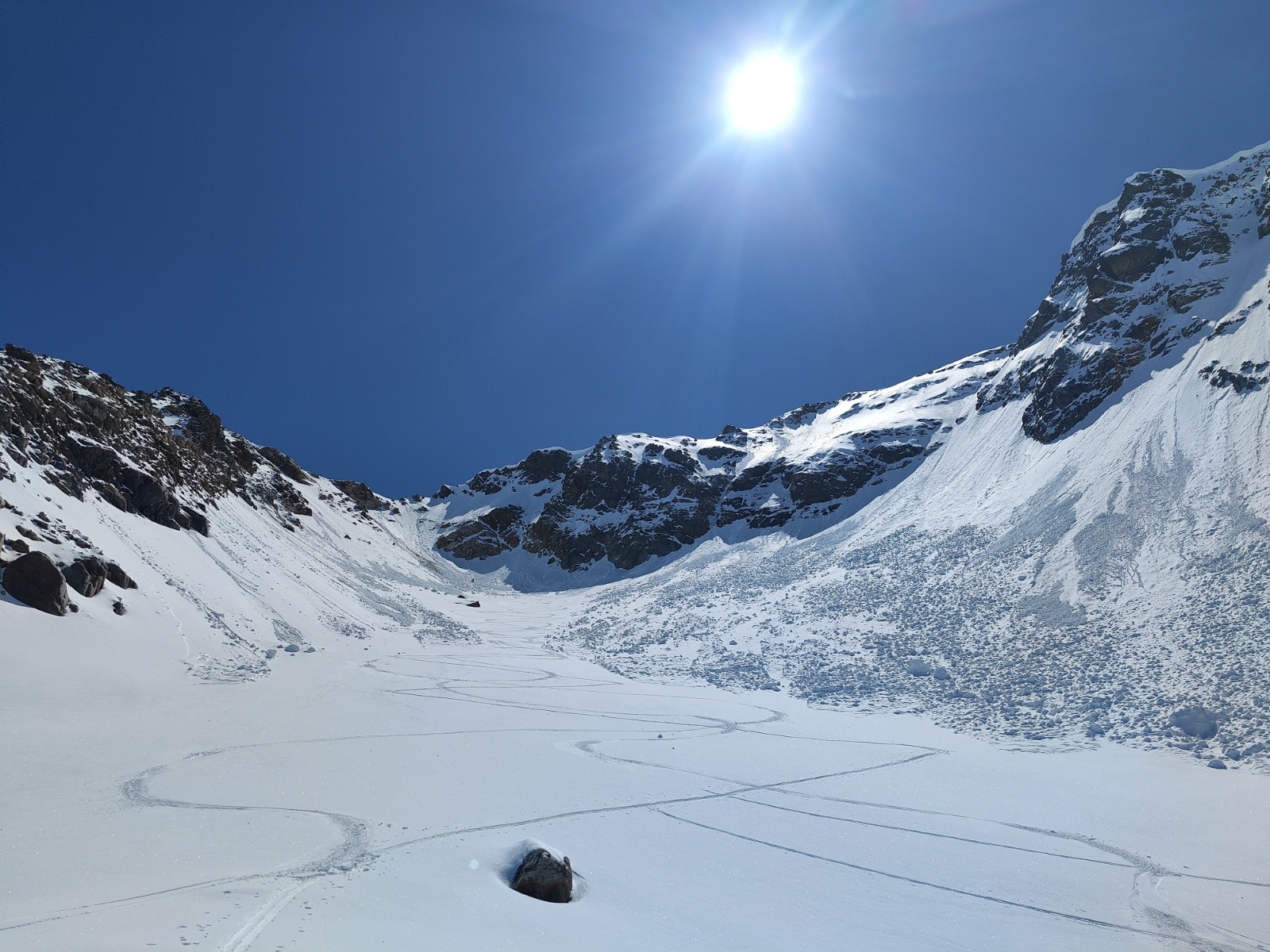 Conditions nivo et activité avalancheuse : beaucoup de coulées de lundi ou mardi, avec un peu de poudre dessus, et quelques purges sous les rochers qui ont vu le soleil