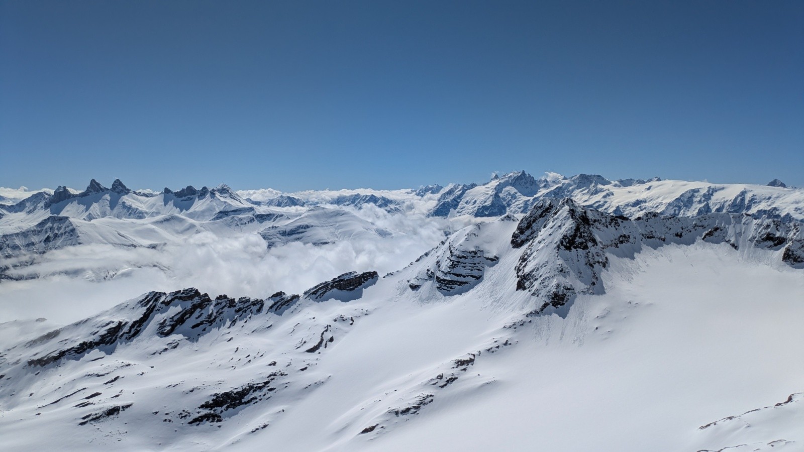 Météo/températures : 0C a 1900 a 7h15, 8C a 14h, mer de nuages a 2300m, grand beau au dessus, pas de vent. Le brouillard monte 11h30
