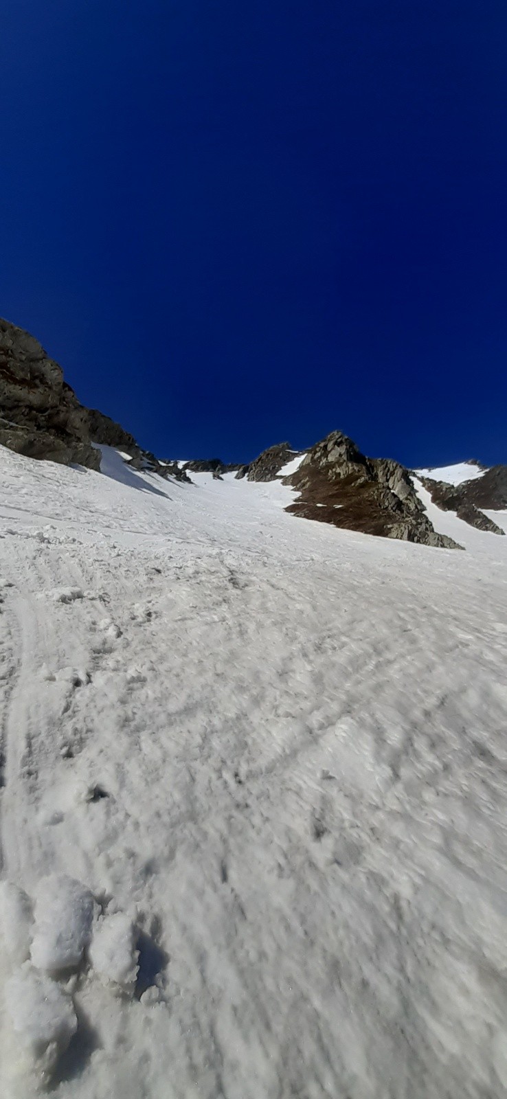 Moquette parfaite pour la descente du couloir NE (accés au couloir denneigé sur 10m).