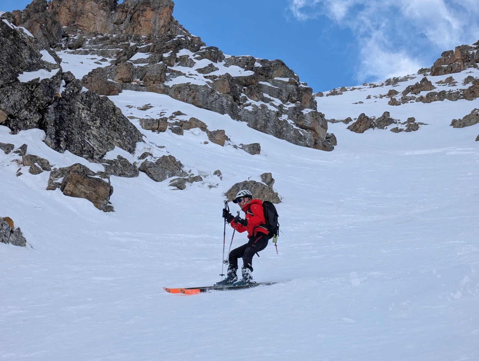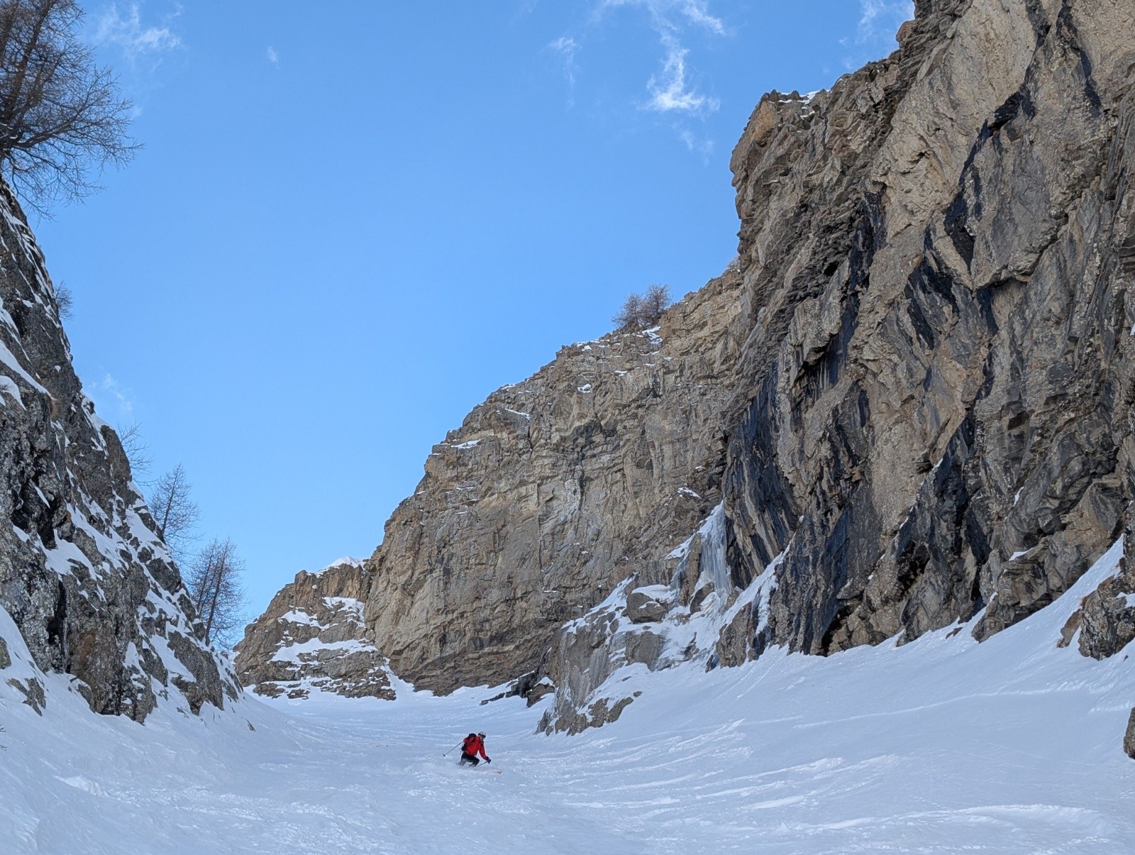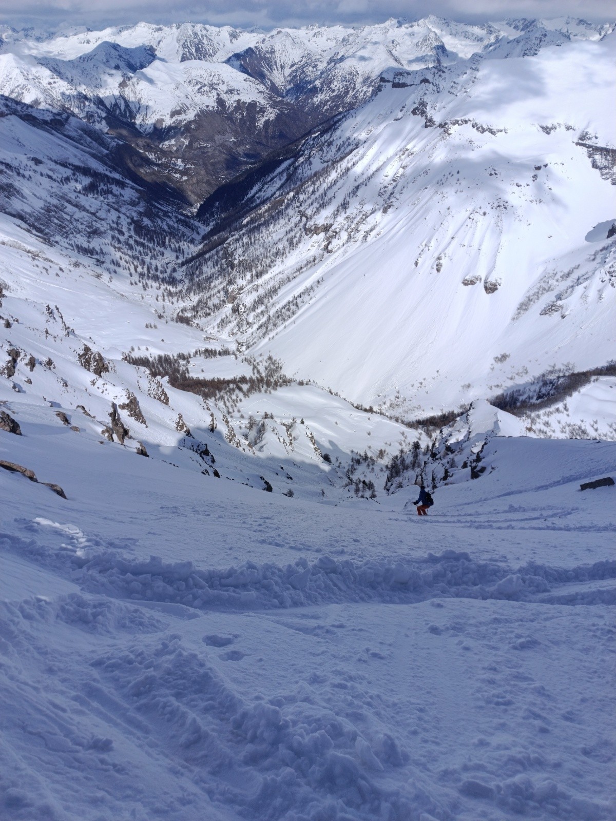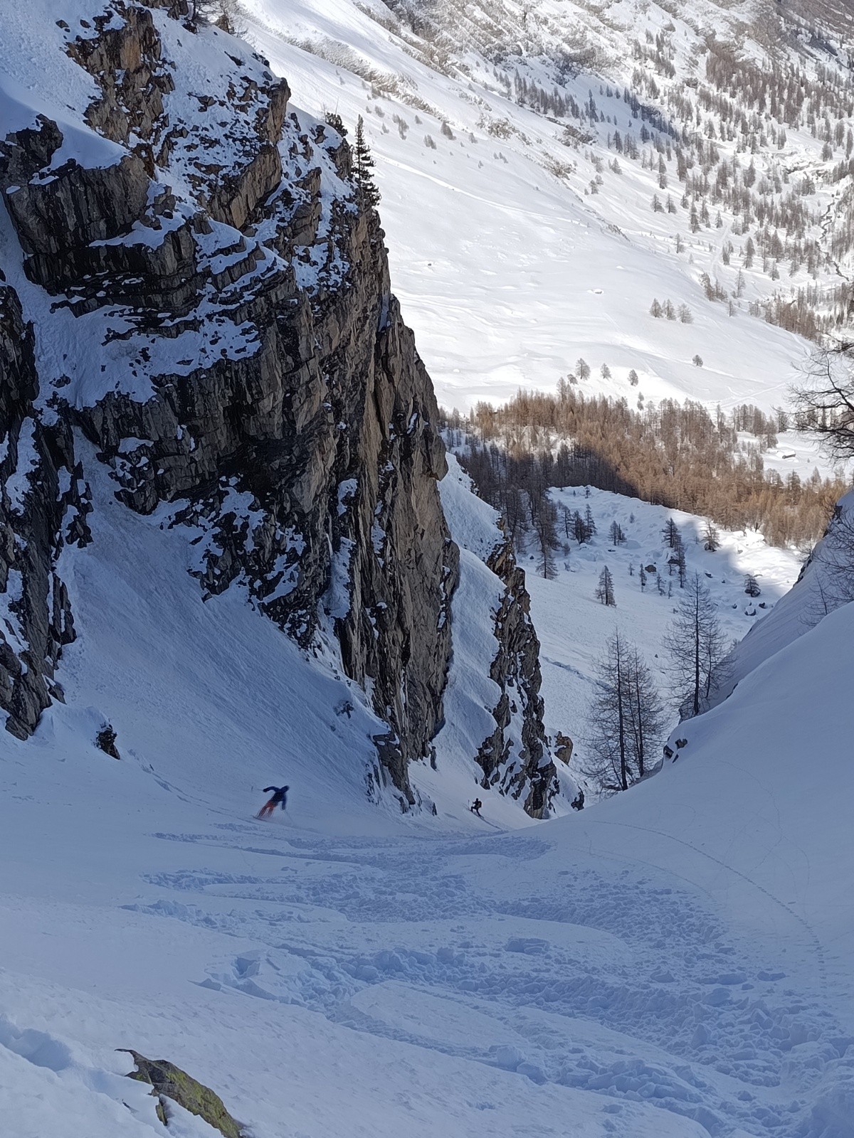 Ensuite 3 jolis virages puis un goulet béton jusqu'au magnifique mini couloir de fin en poudre excellente. Dessous neige croûtée. Même chose dans la forêt. Retour à la voiture par la piste de gialorgues encore bien skiable malgré 5-6 déchaussages.