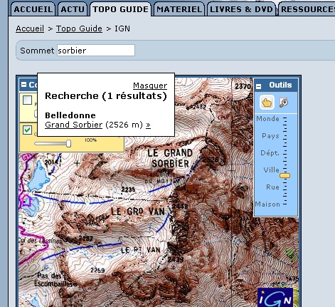 Comme évoqué par Bruno ici, j'ai mis en place une fonction (basique) d'affichage des cartes IGN sur Skitour. Basique parce que l'API géoportail n'est pour l'heure qu'en version "Bêta".