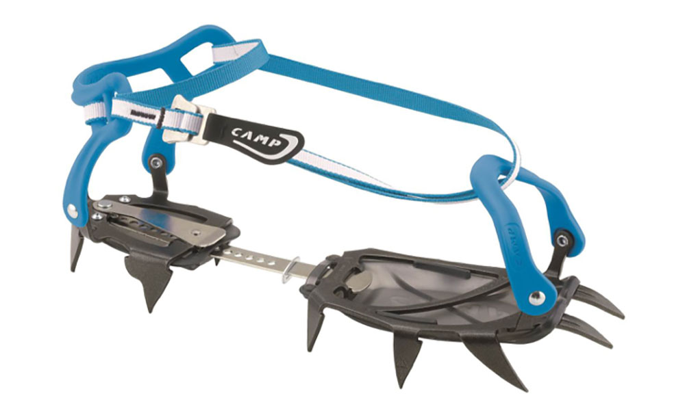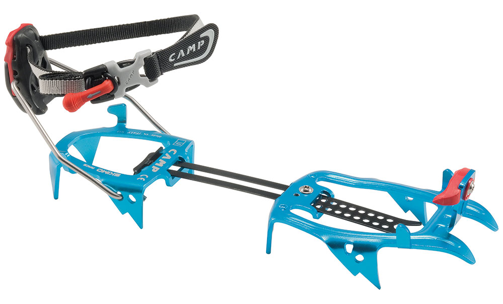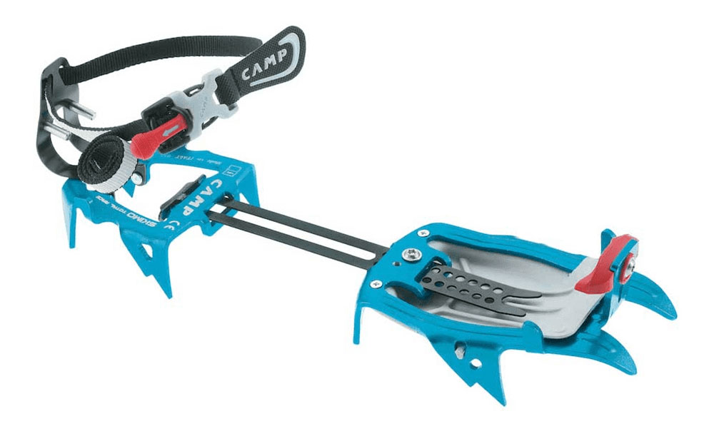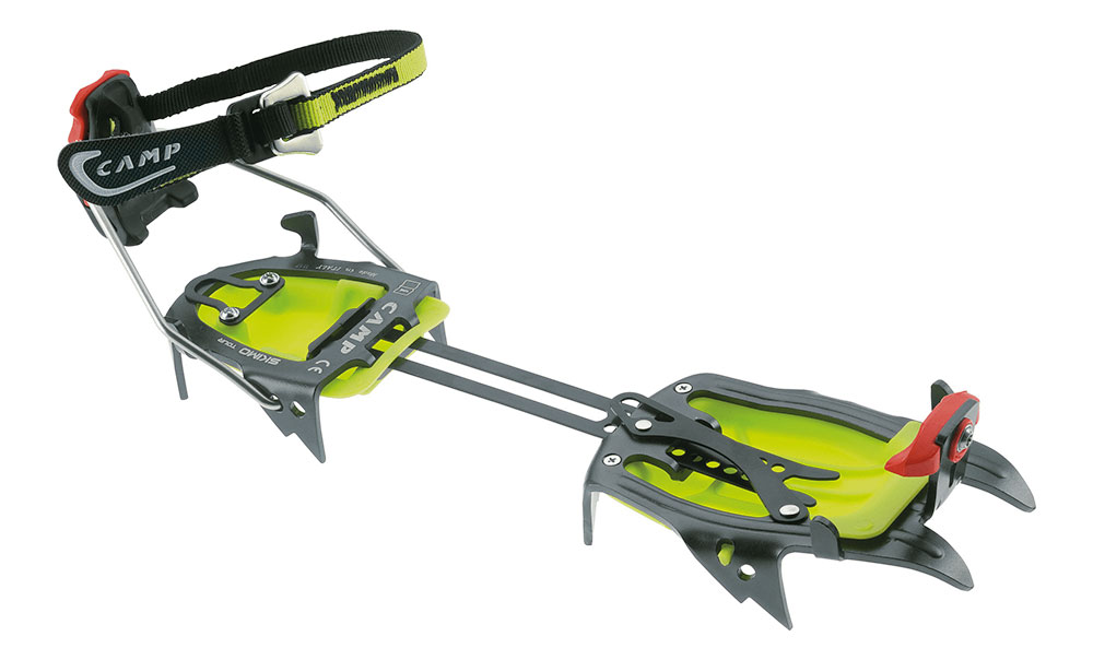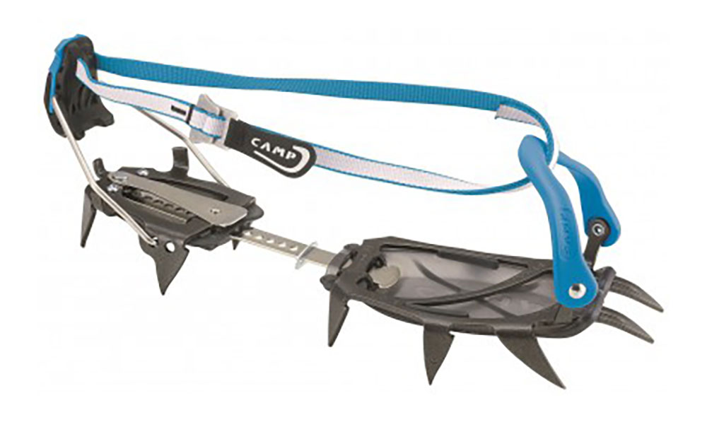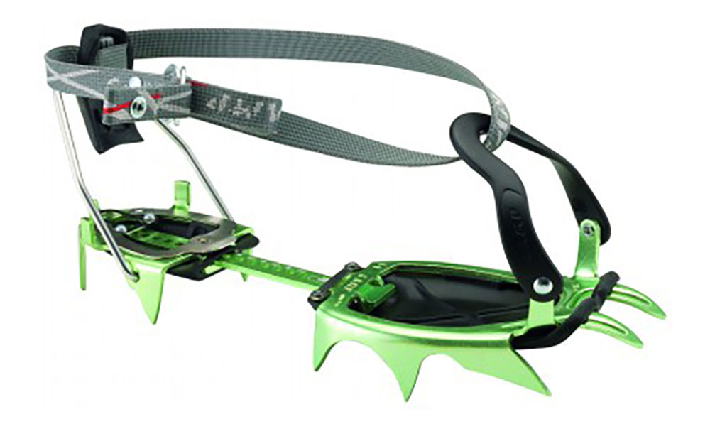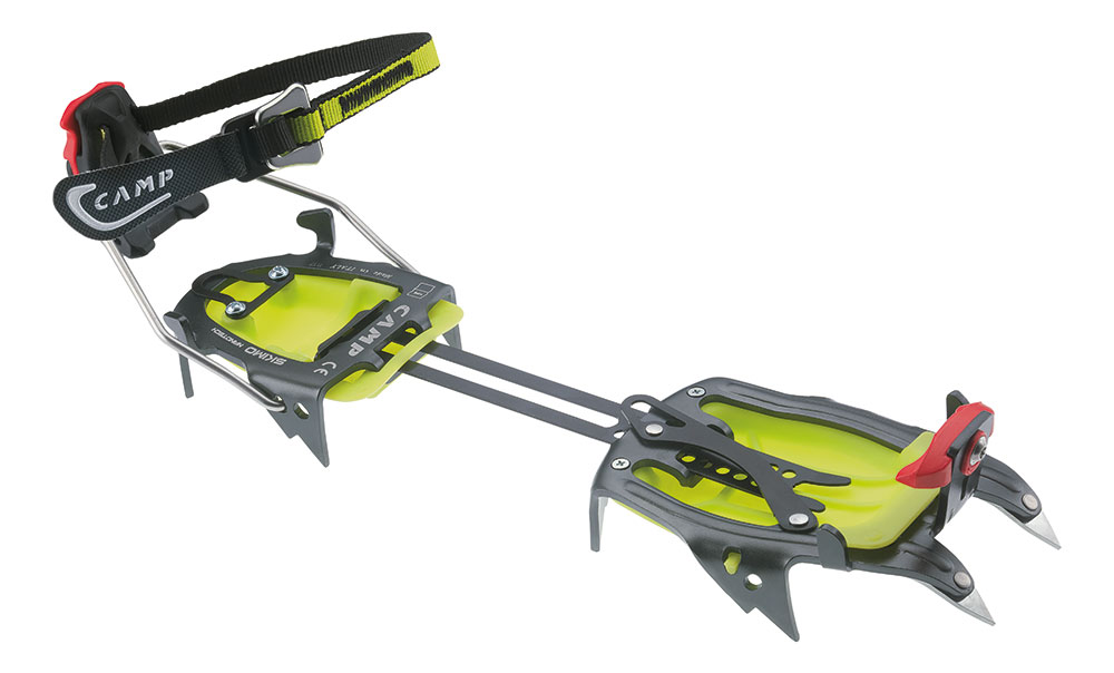 Camp XLC 390Ce crampon à douze pointes est le plus léger au monde et dispose d'une fixation automatique compatible avec les chaussures de ski-alpinisme et de télémark.