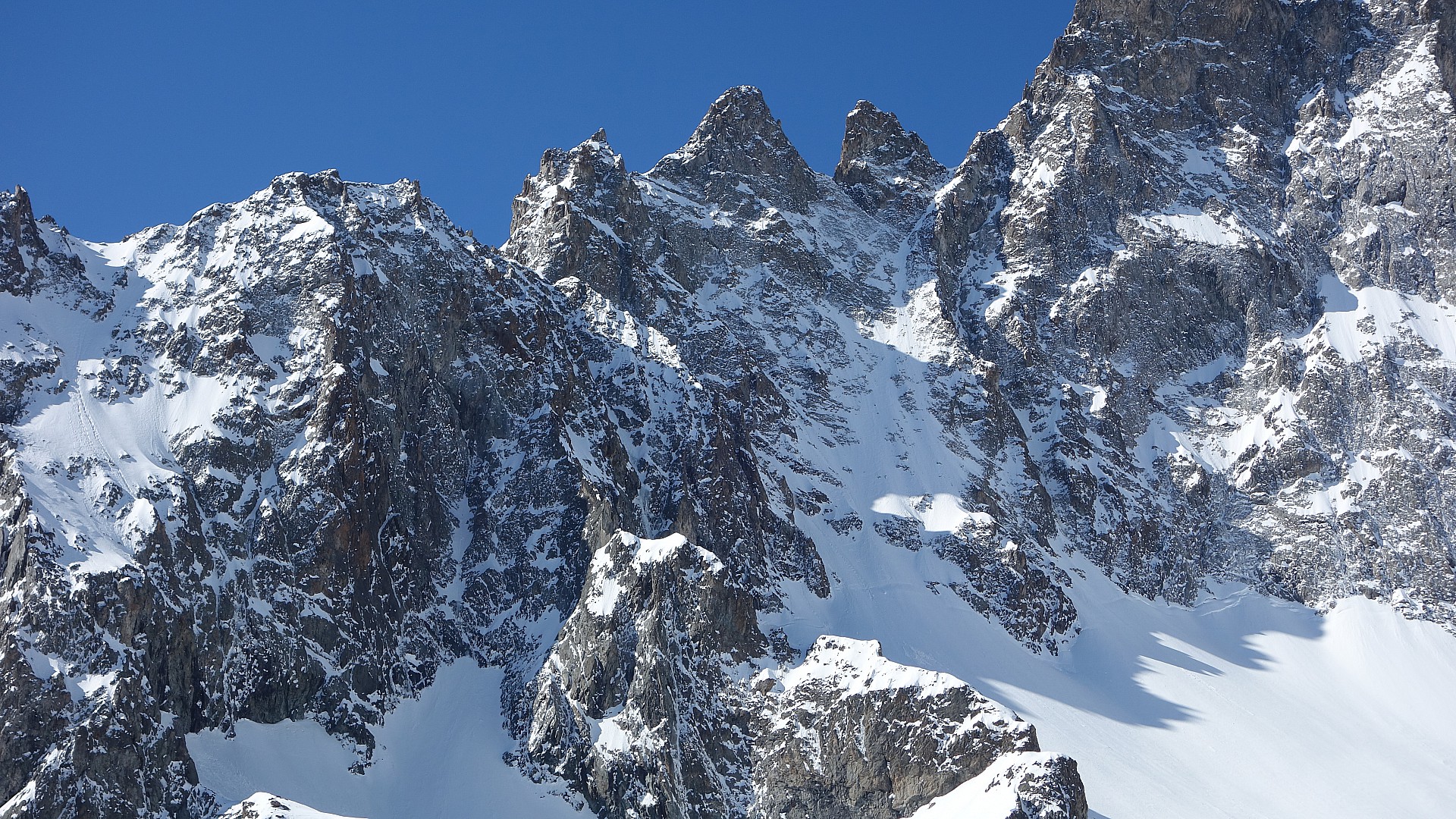 Remarquesne pas attaquer la descente avant 14h si la face a été humidifiée (début juin) sous peine de neige béton !