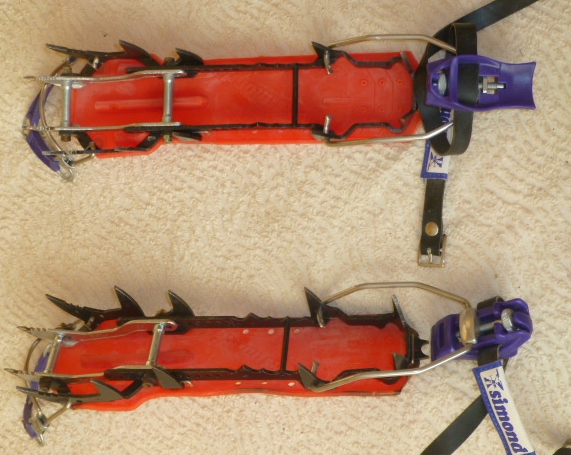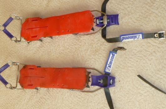 Crampons Simond cascade rigides avec anti bottes semi automatiques avec lanières quasi neufs très peu servi