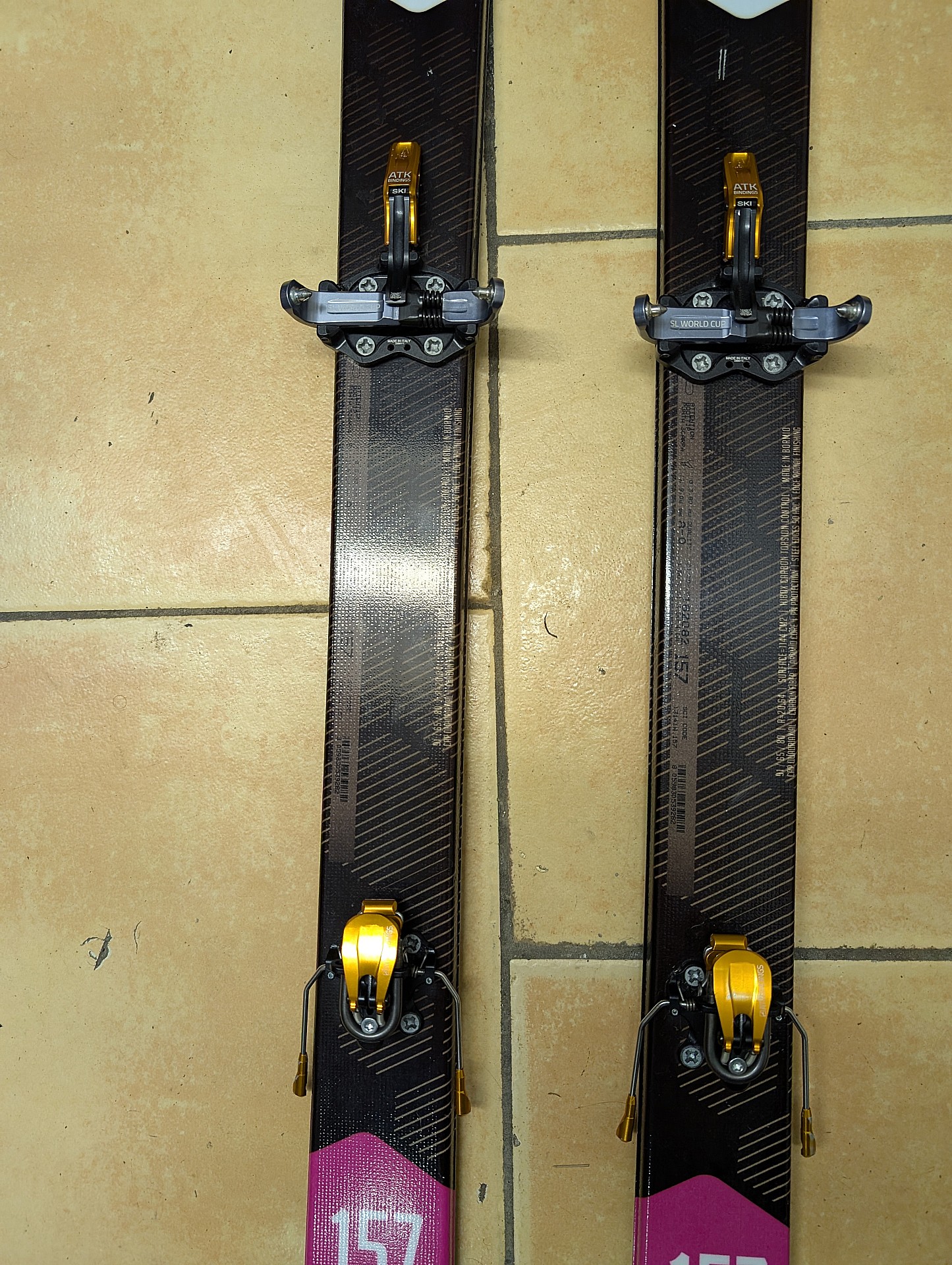 Fixations ATK bindings SL World Cup ultra légères insérée sur les skis pour chaussures en taille 270