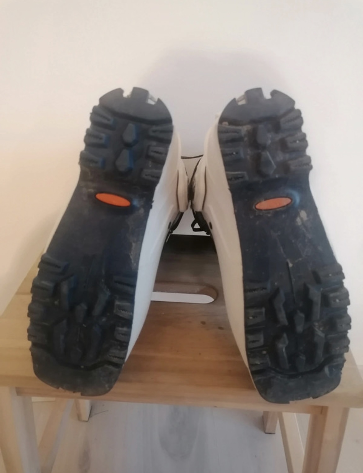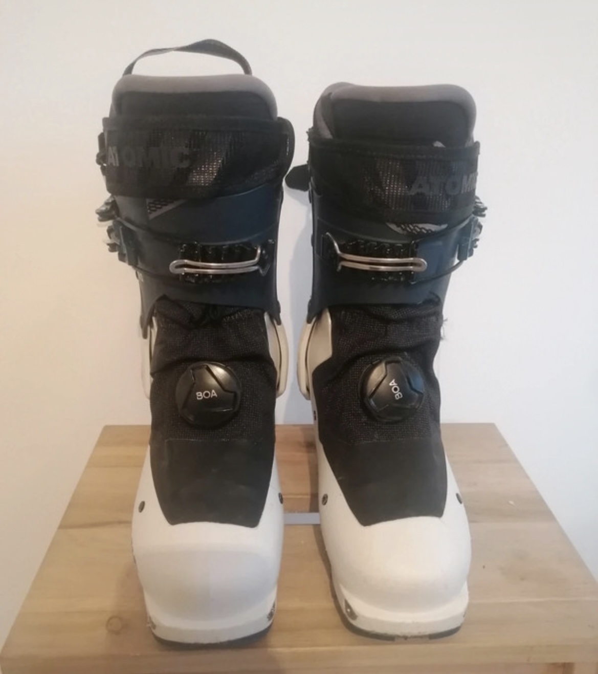 Chaussons thermoformables et lavables (j’avais mes propres semelles). Crochet et boa pour une fermeture optimale.
