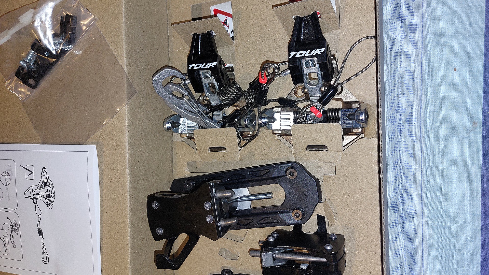 Je vends ces fixations de ski de randonnée Wedze-Tour Light neuves. Identique aux fixations de randonnée dynafit speed ou dynafit turn, neuves jamais montées, débattement 50mm, avec leash et vis.
