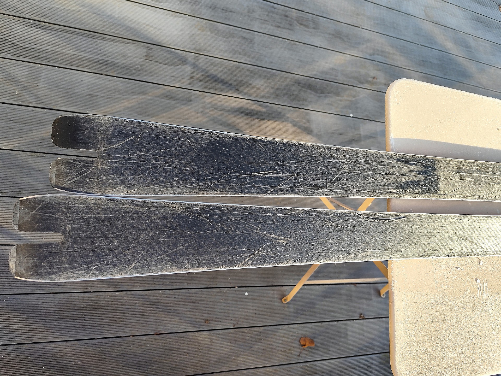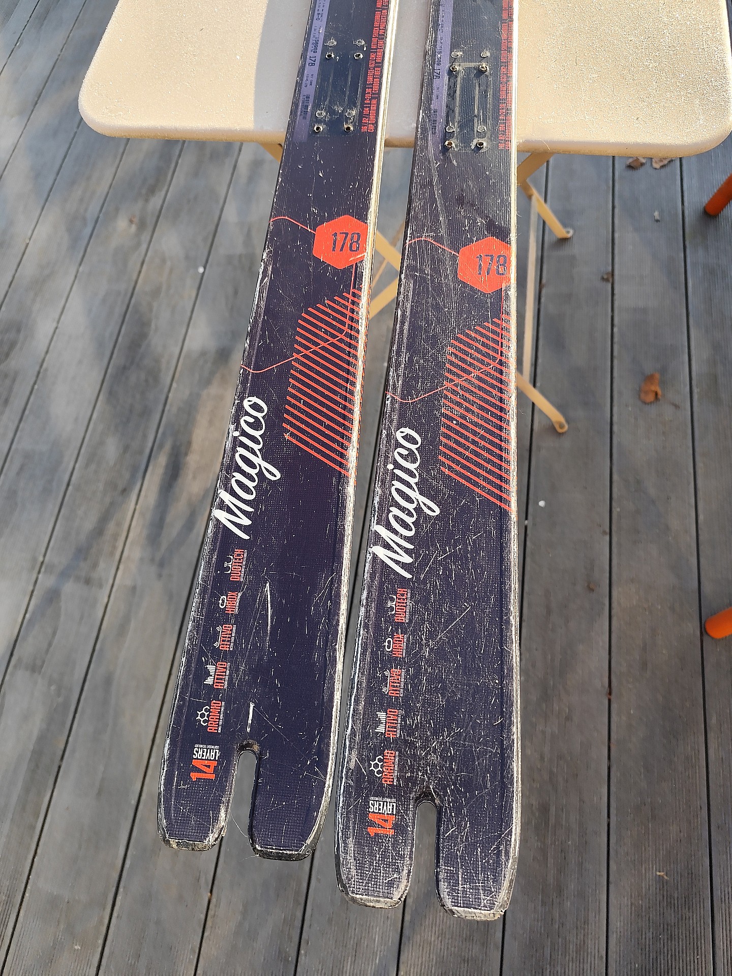 Traces d'usures mais encore en bon état pour skier, plutôt comme ski cailloux.