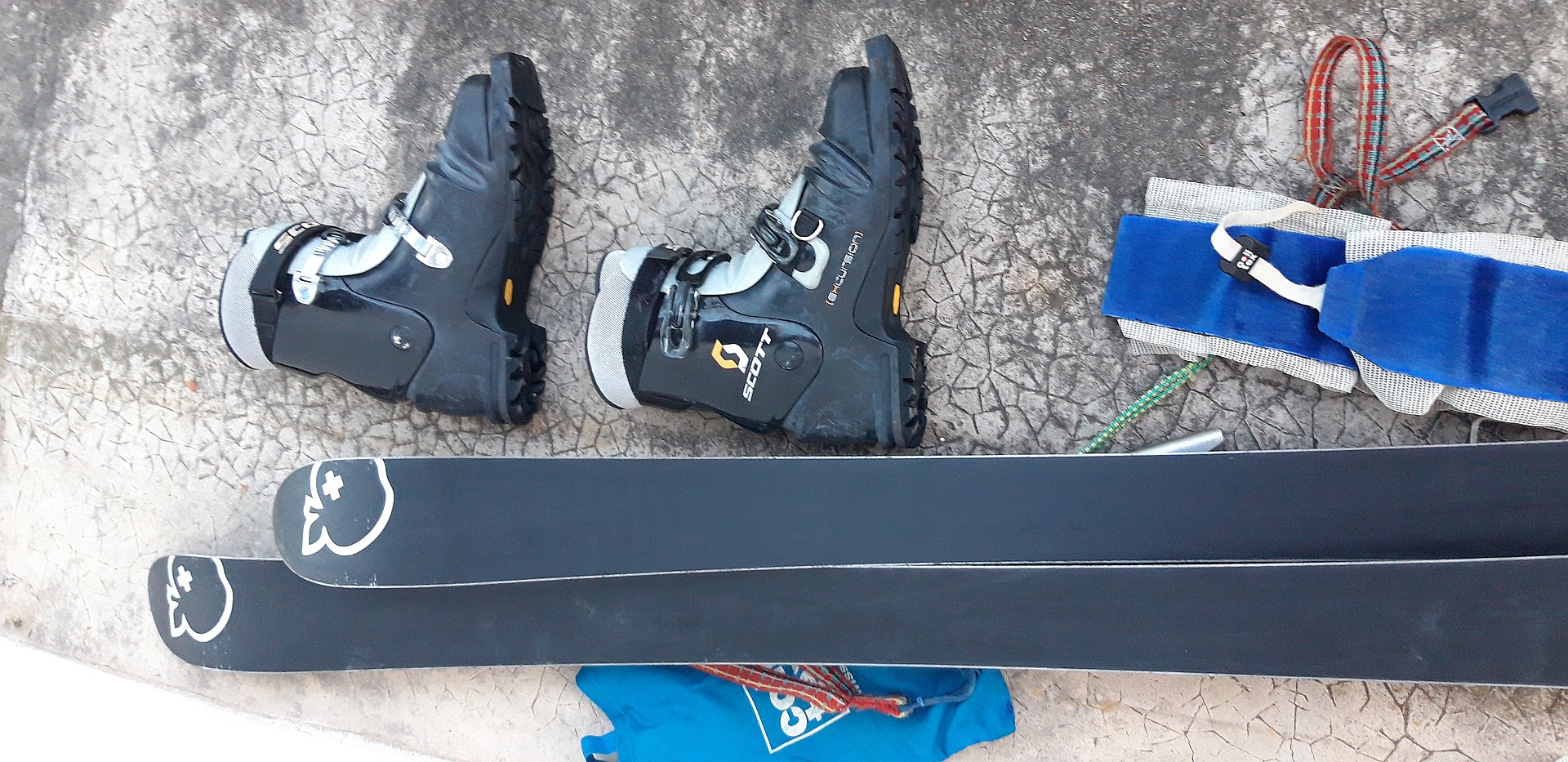 Ensemble skis de randonnée montés en télémark (Movement bond 169cm et fixations de sécurité 7TM), chaussures excursion (Scott taille 44) et peaux de phoque (colltex). Possibilité de mettre des couteaux amovibles.