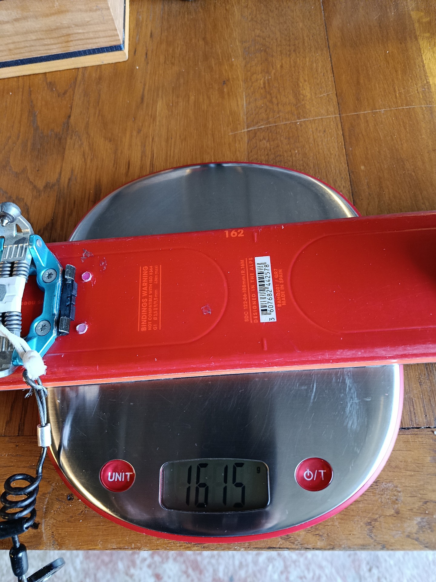 Poids skis + fix 1610 grammes, lignes de côte des skis 122 86 108, skis très faciles à skier .