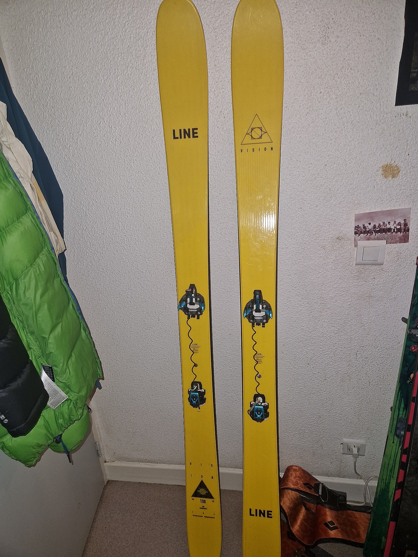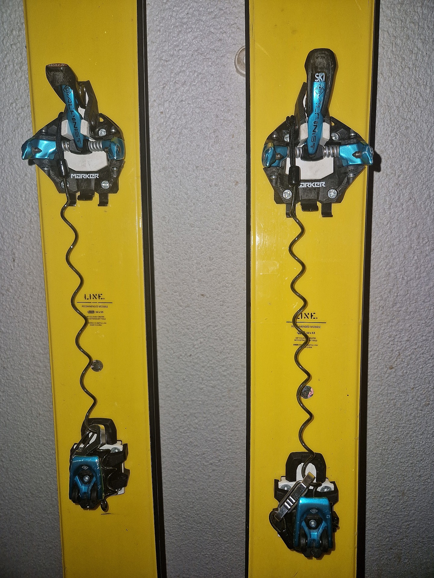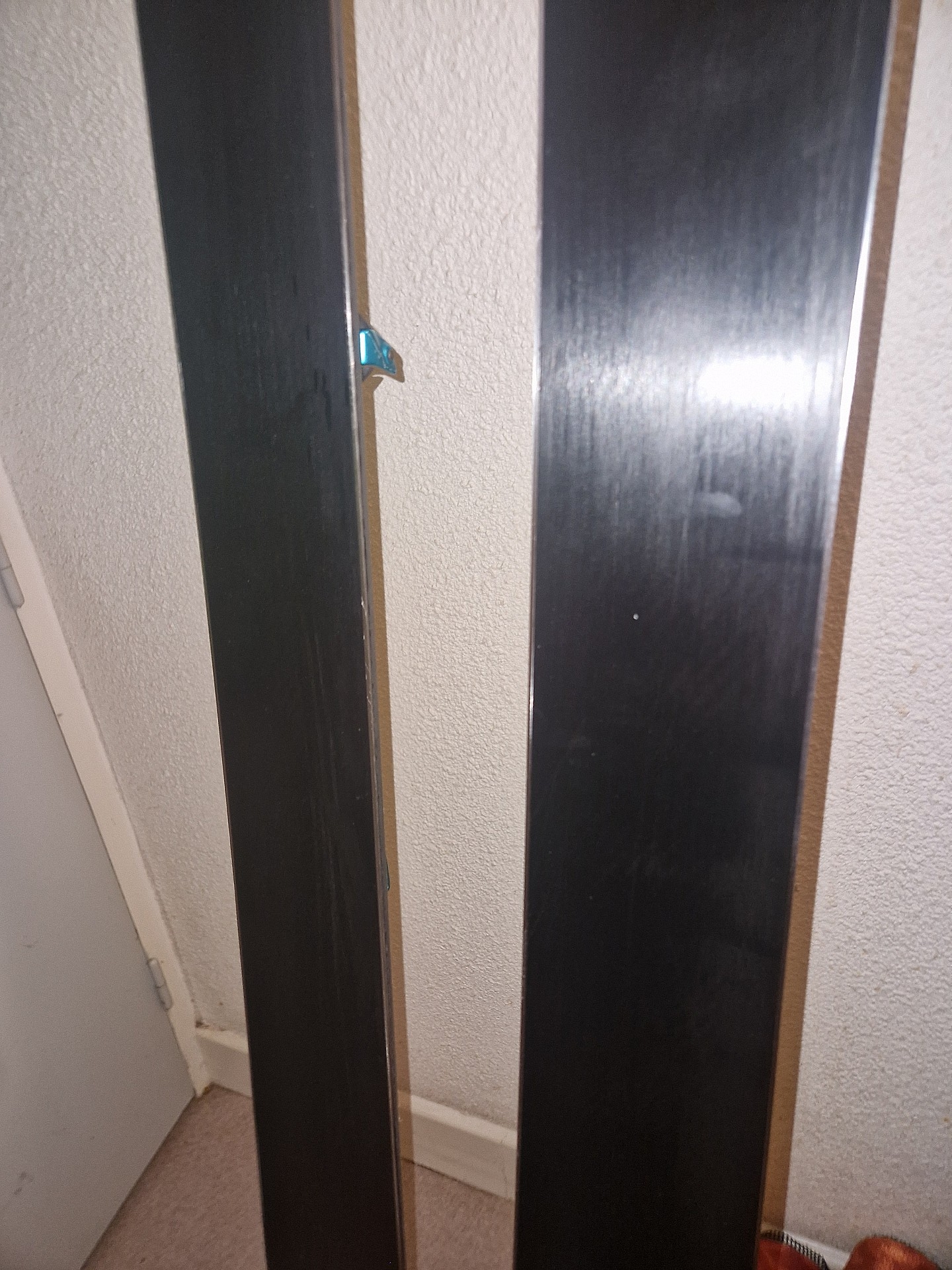 Semelles structurées fartées carres affutés céramique par mes soins. Fix tres bon état. Perce en 306. Reglage environ 302 309. Percés 1 seule fois donc deplacement possible si necessaire je peux vous le faire proprement avec petit supplement c est mon job. Peaux nylon black d bon etat. Reencollage fait pour la vente
