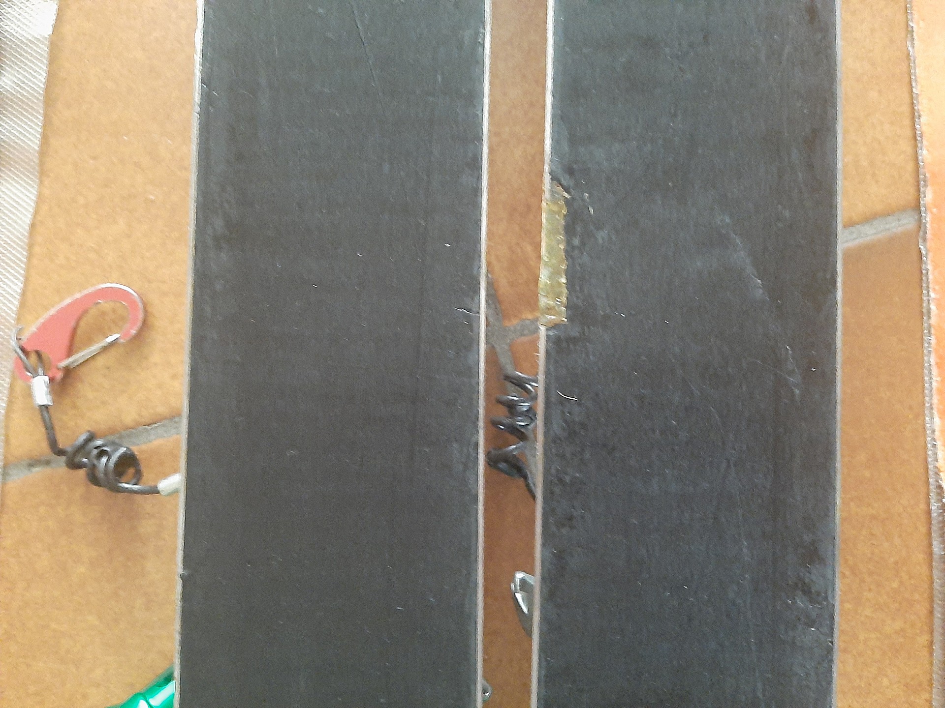 3 cm de carre cassée sur un des skis, réparée avec de la colle. Ca tient très bien.
