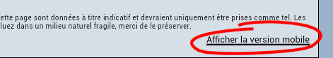 Attention : quand vous avez cliqué sur ce lien, vous restez bloqué sur le site classique. Pour revenir sur le site mobile il suffit de cliquer sur "Vers la version mobile" présent en bas de page :