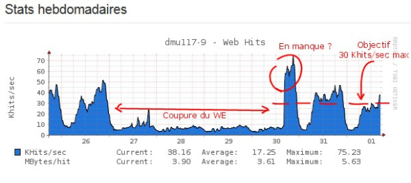 Nous avons dû, en urgence, négocier un multirack chez BrainServe datacenter à Lausanne pour absorber le trafic, mais cette solution n'est pas pérenne. En attendant la fin de la construction de DC2 nous allons devoir limiter le trafic. L'objectif est des descendre sous les 30KHits par seconde, charge limite acceptable pour les machines. Plusieurs solutions s'offraient à nous, chacune avec leurs contraintes. Nous avons finalement choisi celle qui nous semblait la moins pire : Nous avons décidé de mettre en place un alternat de consultation entre 18h et 24h (plage horaire la plus chargée) les jours pairs/impairs à partir de demain.