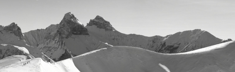 Où se dirigent donc ces 4 "minuscules" skieurs (sommet "plat" au premier plan) ?