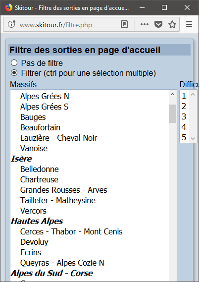 je fais une selection multiple pour n'avoir que la haute savoie mais rien pour valider mon choix donc je clique sur la croix et rien ne se passe