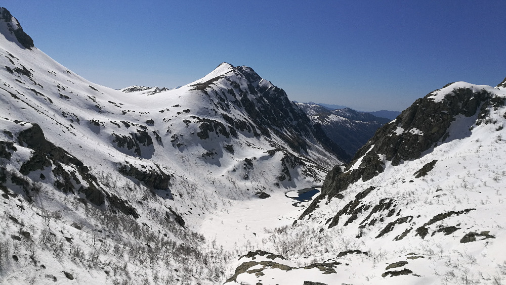 Beaufortain, crête séparant les barrages de Roselend et St Guerin. Possibilité de belles descentes au dessus des barrages.