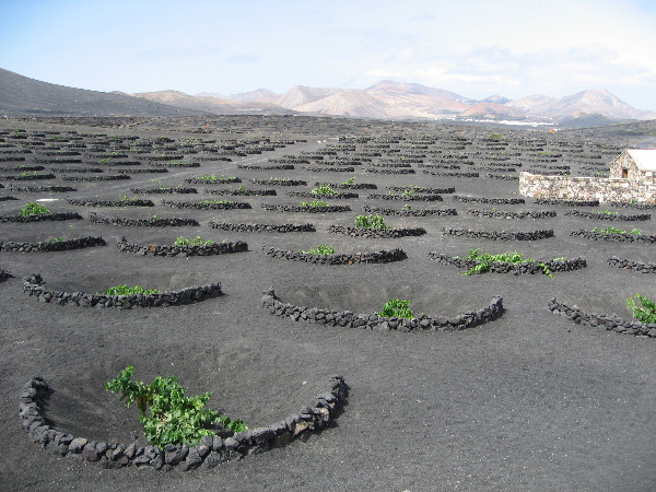 Presque : de la vigne à Lanzarote, avec les volcans du parc national Timanfaya derrière. Ce vignoble est spectaculaire et c'est une très belle île en général. La main passe.