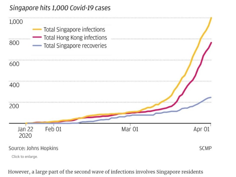 La montée en flèche des cas Covid-19 à Singapour, mais comme le virus s'arrête aux frontières, on va pouvoir sortir à loisir ...