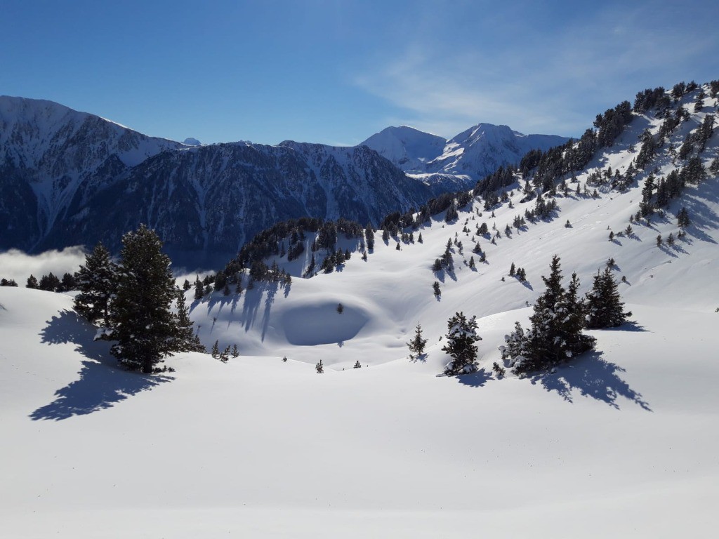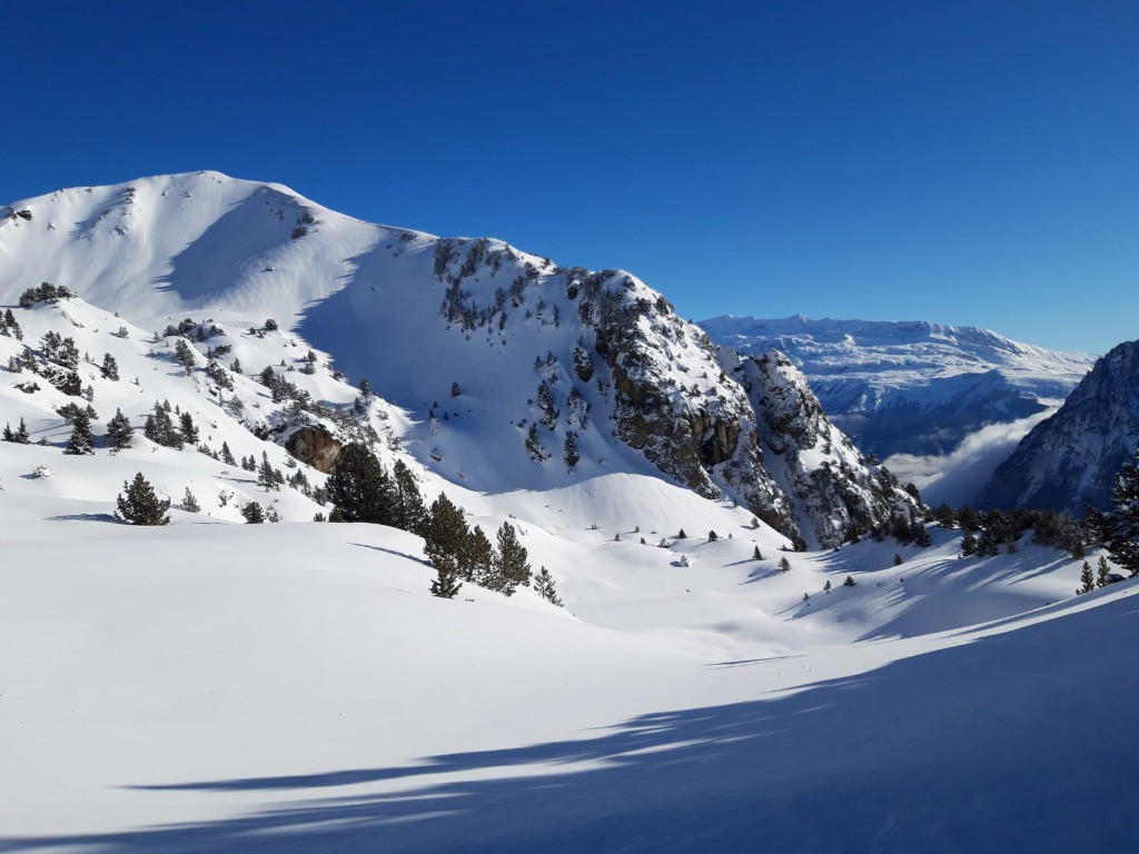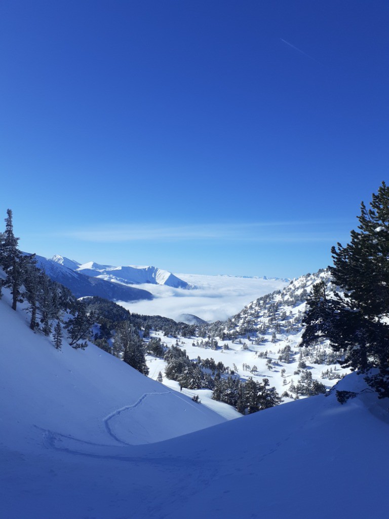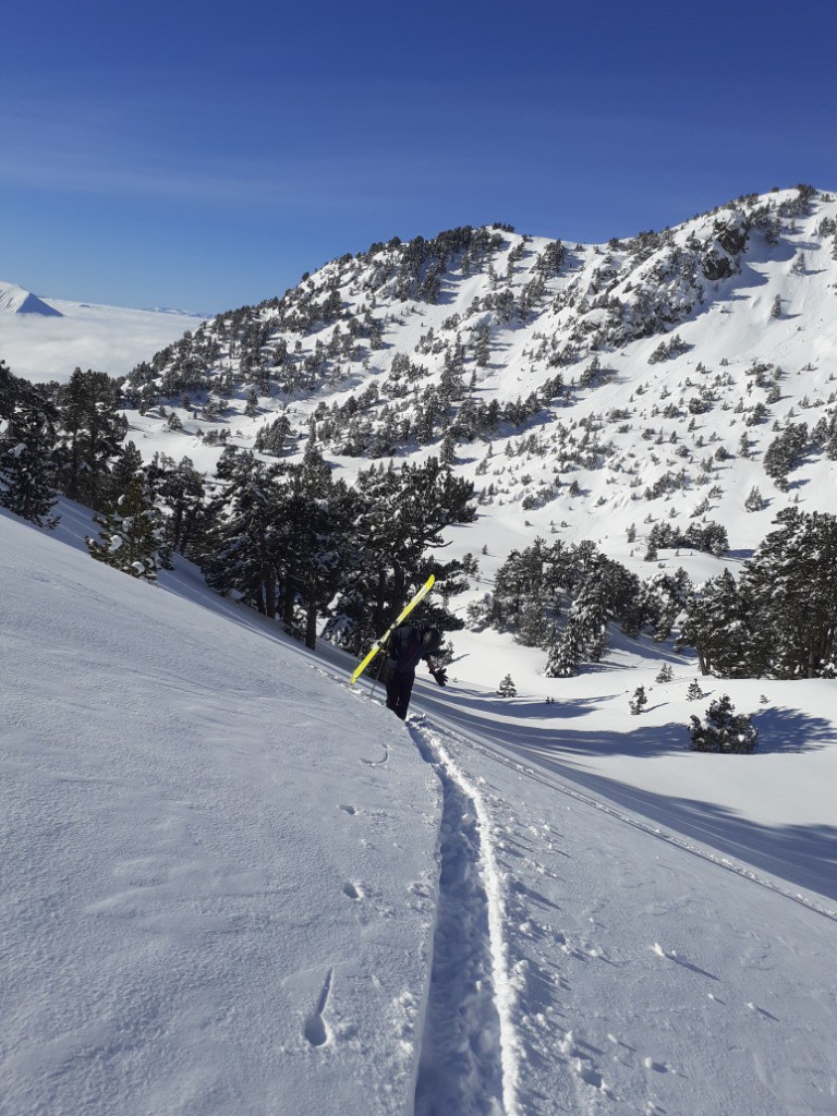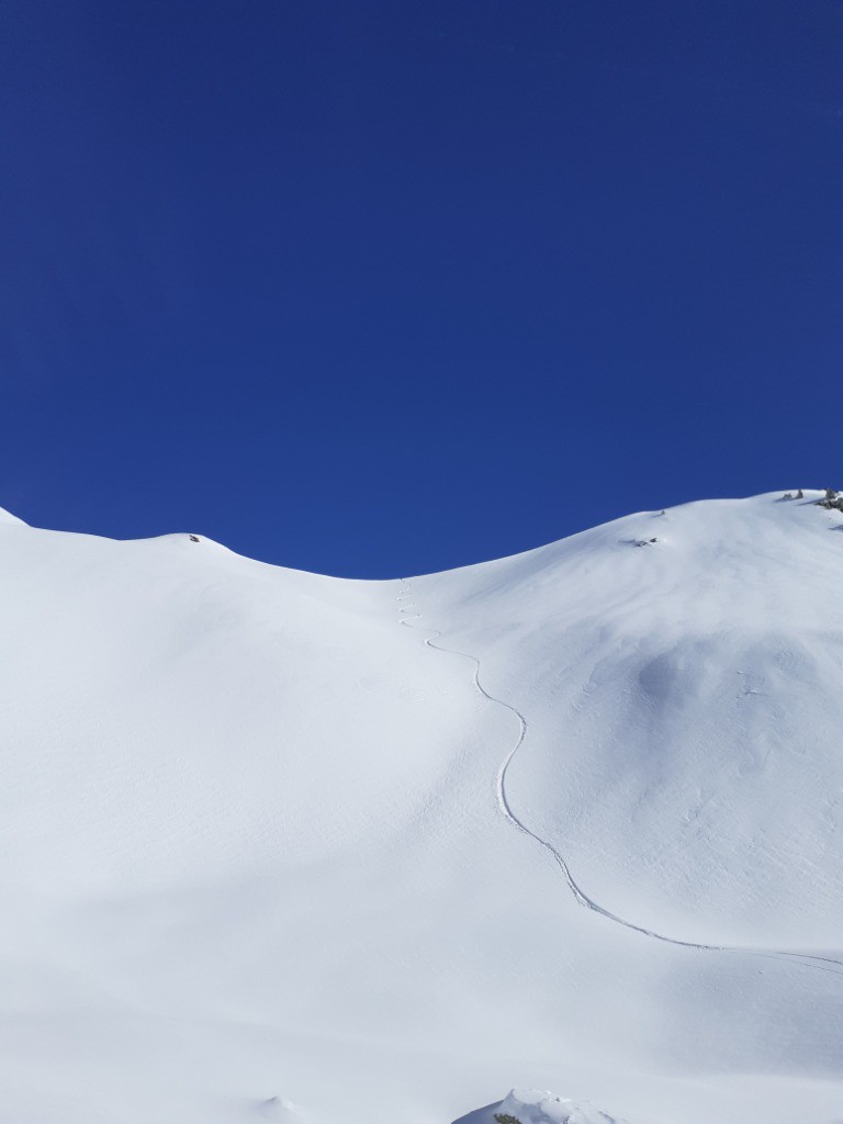 La peau ayant séché on a pu repartir de l'infernet jusqu'au col de la botte, de là nous avons également pris la pente sous le sommet de la Botte qui était particulièrement bon, puis retour à la croix et descente dans les sapin jusqu'à la voiture.