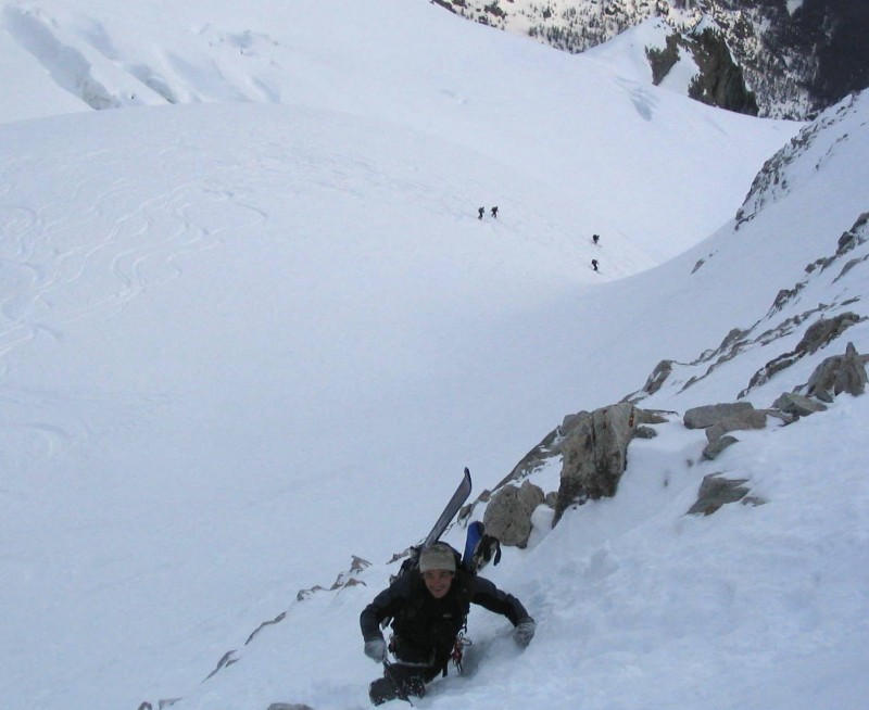 Le 2 mai Brêche de la meije, descente sur le glacier jusqu'à 2800, Serret du Savon, Glacier de l'homme. Je n'avais jamais fait tout ce tour. La descente par le glacier de l'Homme est grandiose (cadre hors catégorie). On avait hésité à descendre le Tabuchet semble t il en poudre mais pas de regret.
