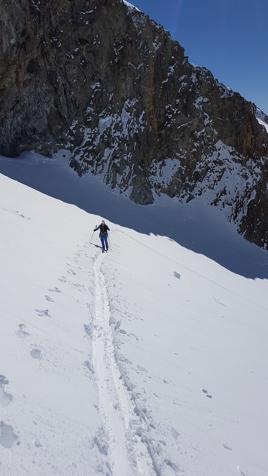 | Pente sommitale | 3800 | Sud Ouest | 13h00 | Assez alourdie/humide mais sûre pour la montée/descente |