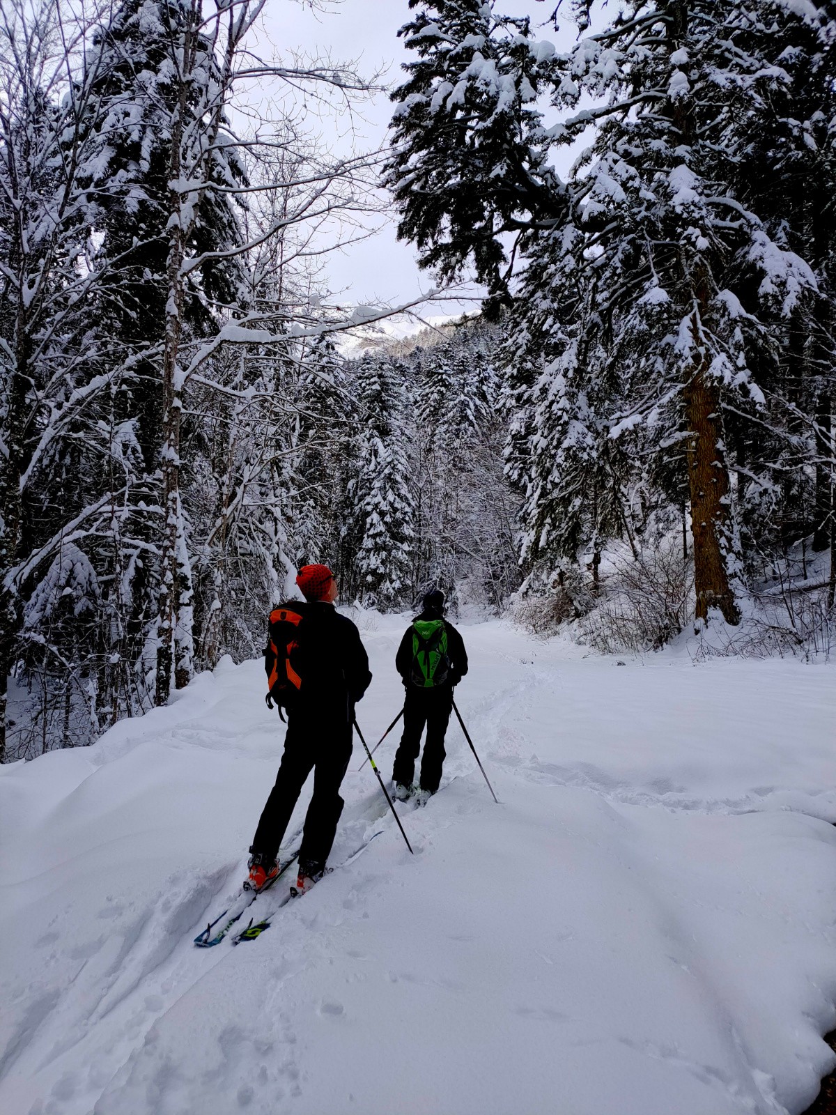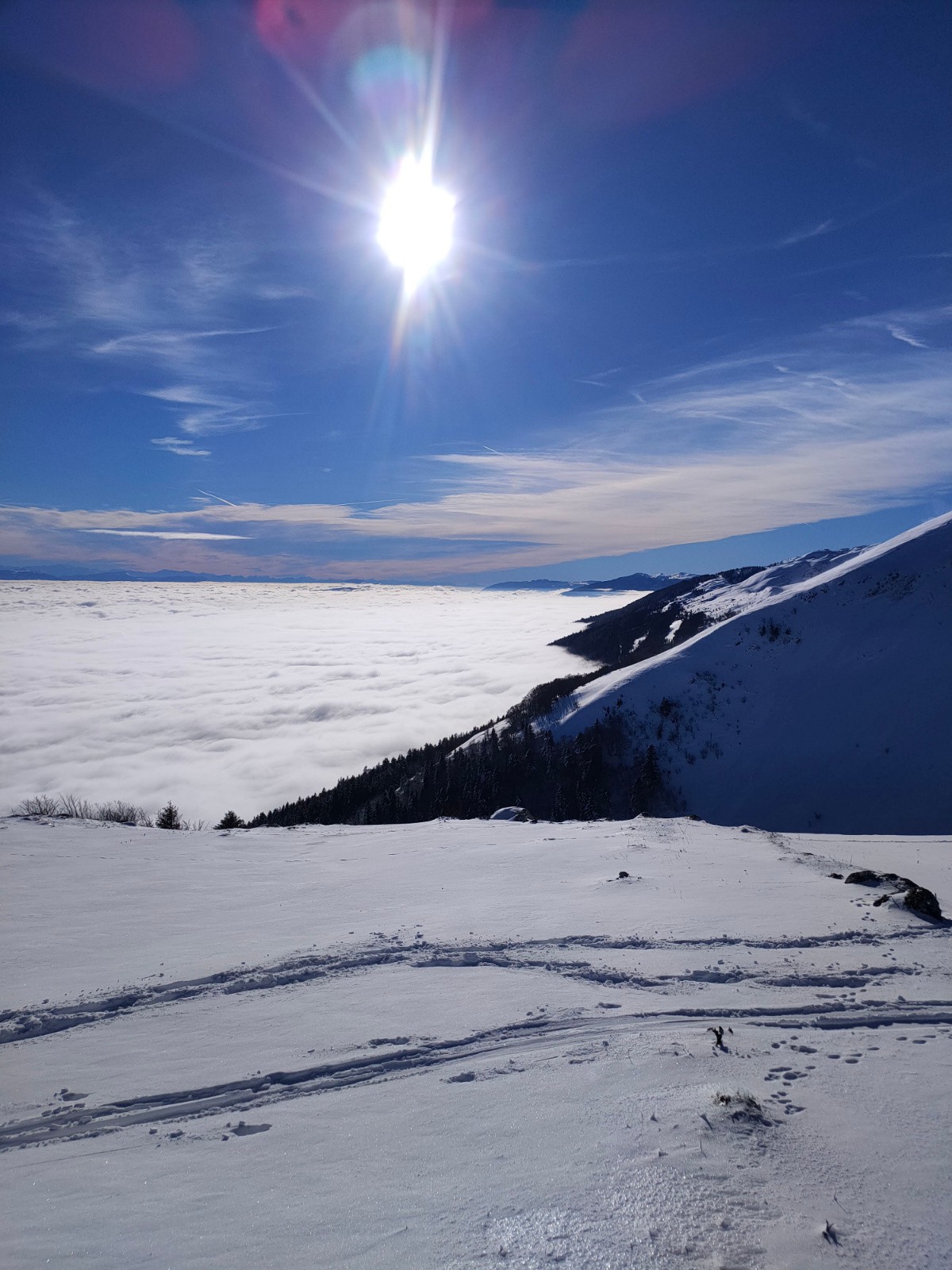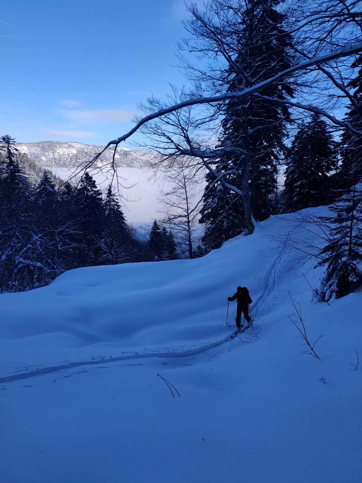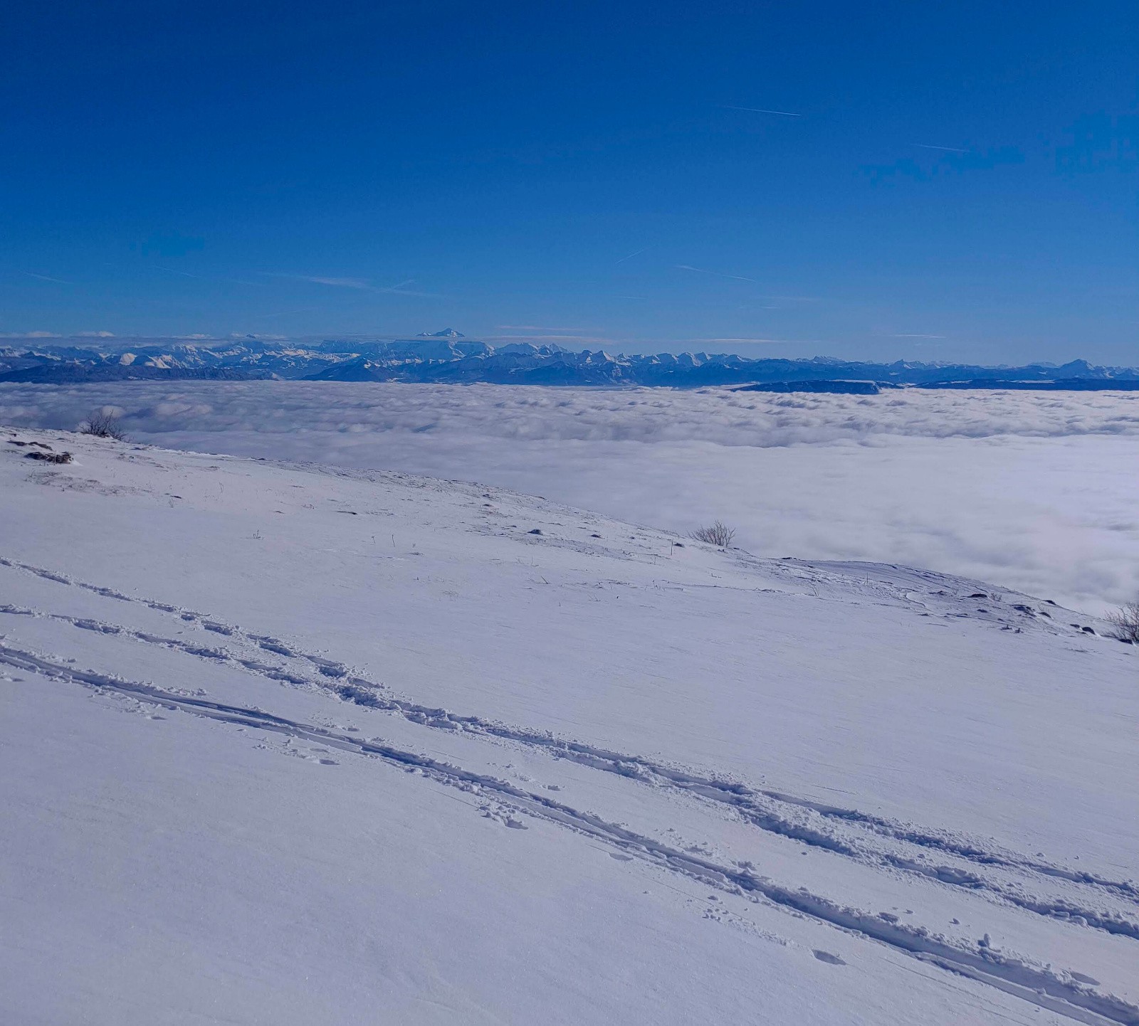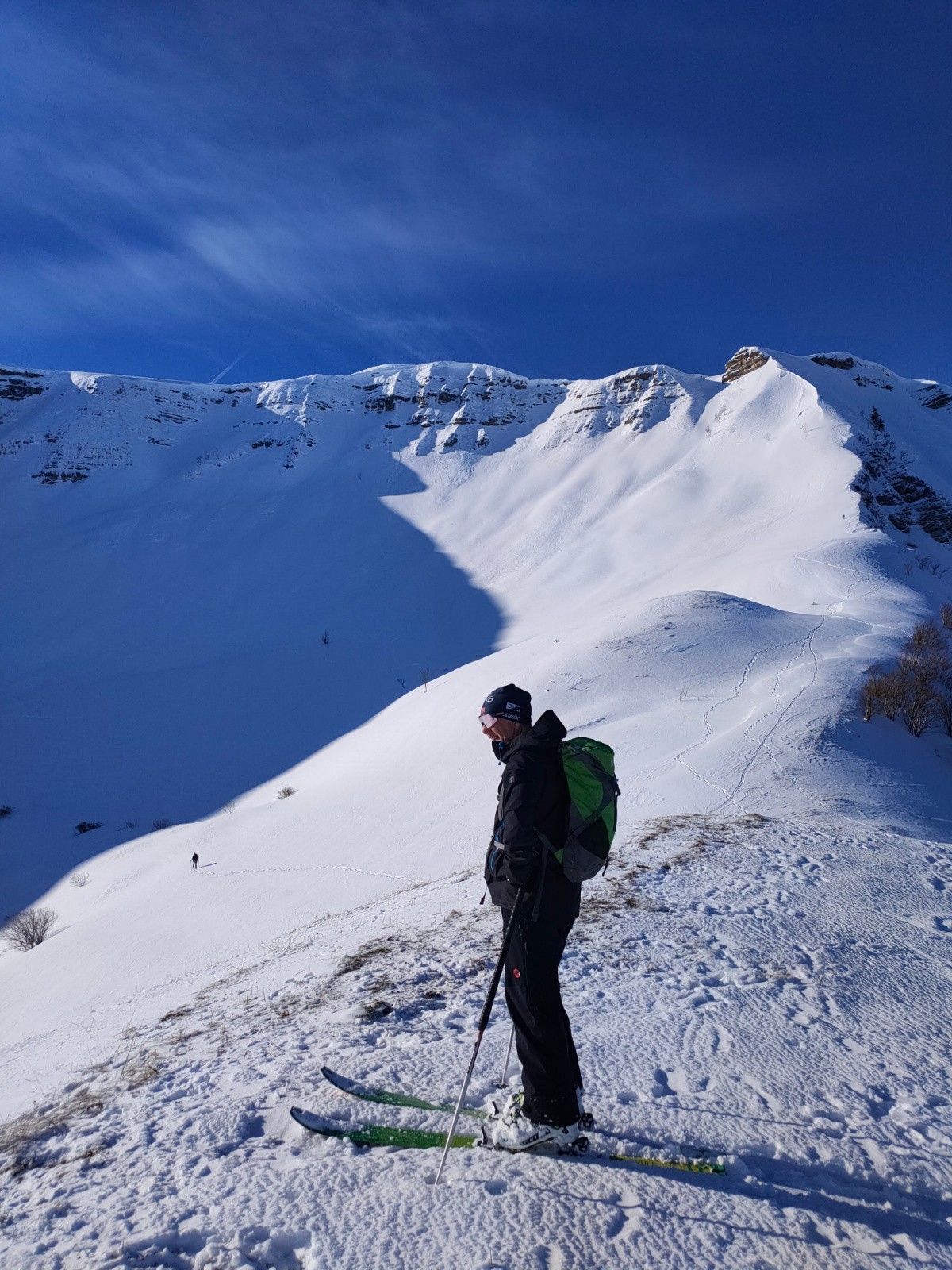 Un retour vers ce sommet satellite du Colomby de Gex, pour une fois que l'on peut chausser au "creux de l'Envers". Ce frigo que j'avais délaissé pendant des hivers garde la poudre pendant tout l'hiver si l'hiver le lui permet..! Le sapin du sous préfet mérite bien ce sauvage détour, au dessus de nous le soleil inonde les face Sud du Mont Rond, le petit et le grand ..! Revenir ici avec "mes amis de trente ans" fut un plaisir, comme un combat gagné sur le temps qui nous dépasse.