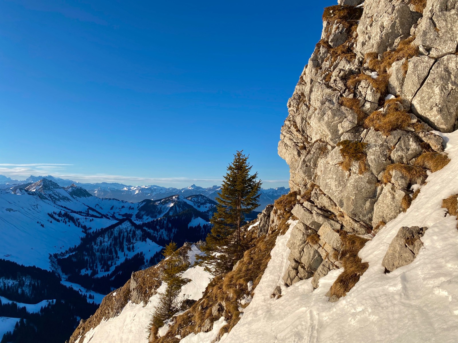 Bonne pioche ! Super conditions dès 9h, lumière magnifique et solitude totale, rare sur ce sommet qui est aux Vaudois ce que Chamechaude est aux Grenoblois...