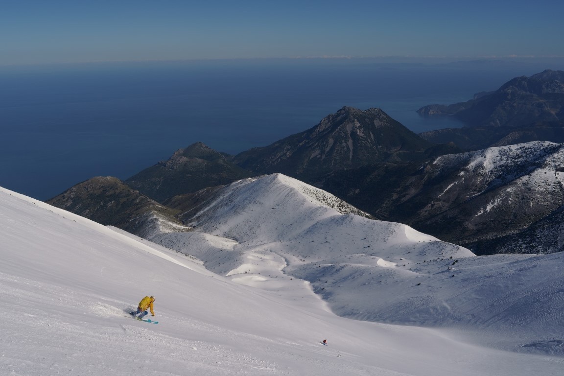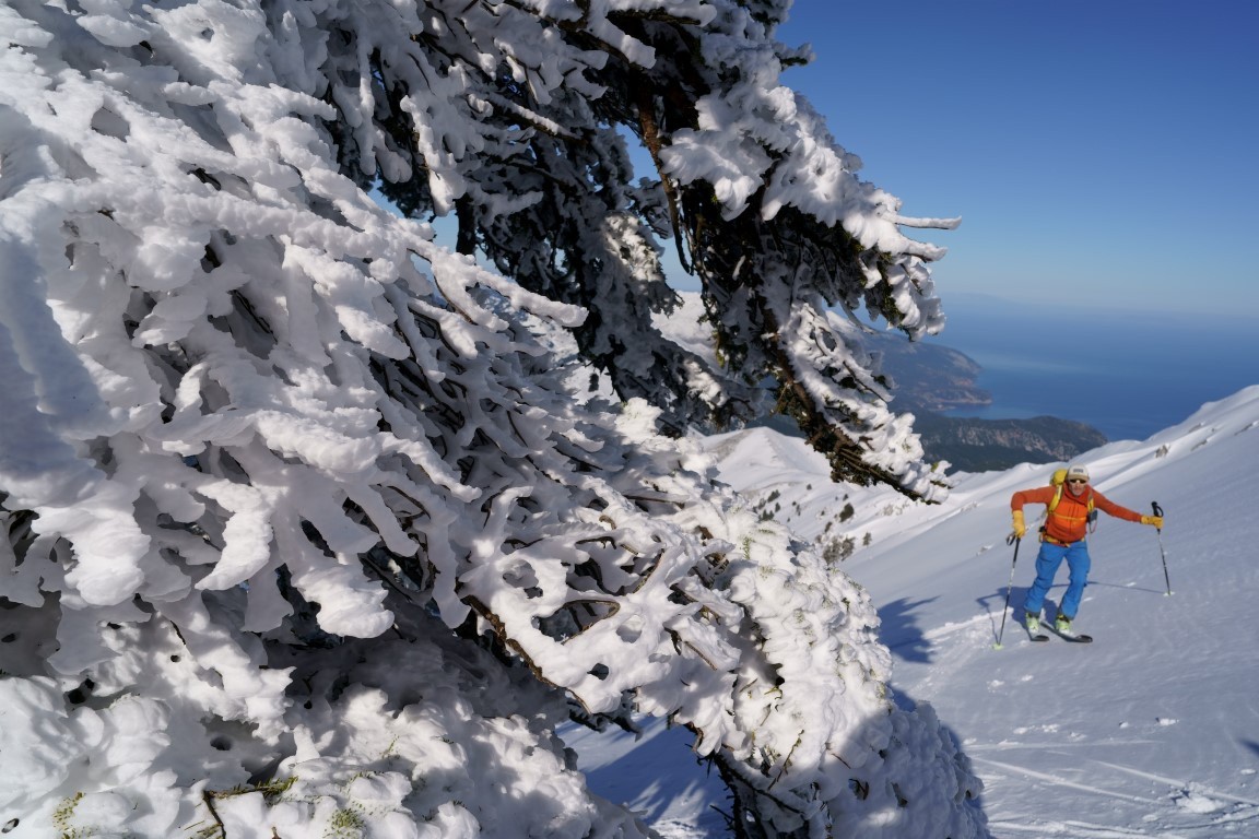 Altitude de chaussage/déchaussage : 950 m au chaussage au parking, 850 m en bas de la combe nord, pas mal à la latitude de la Calabre!