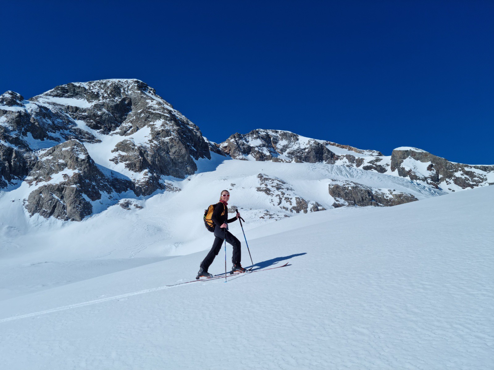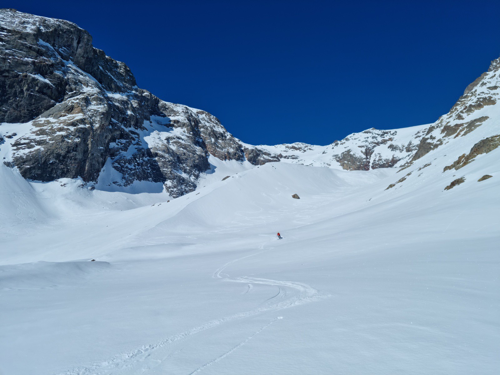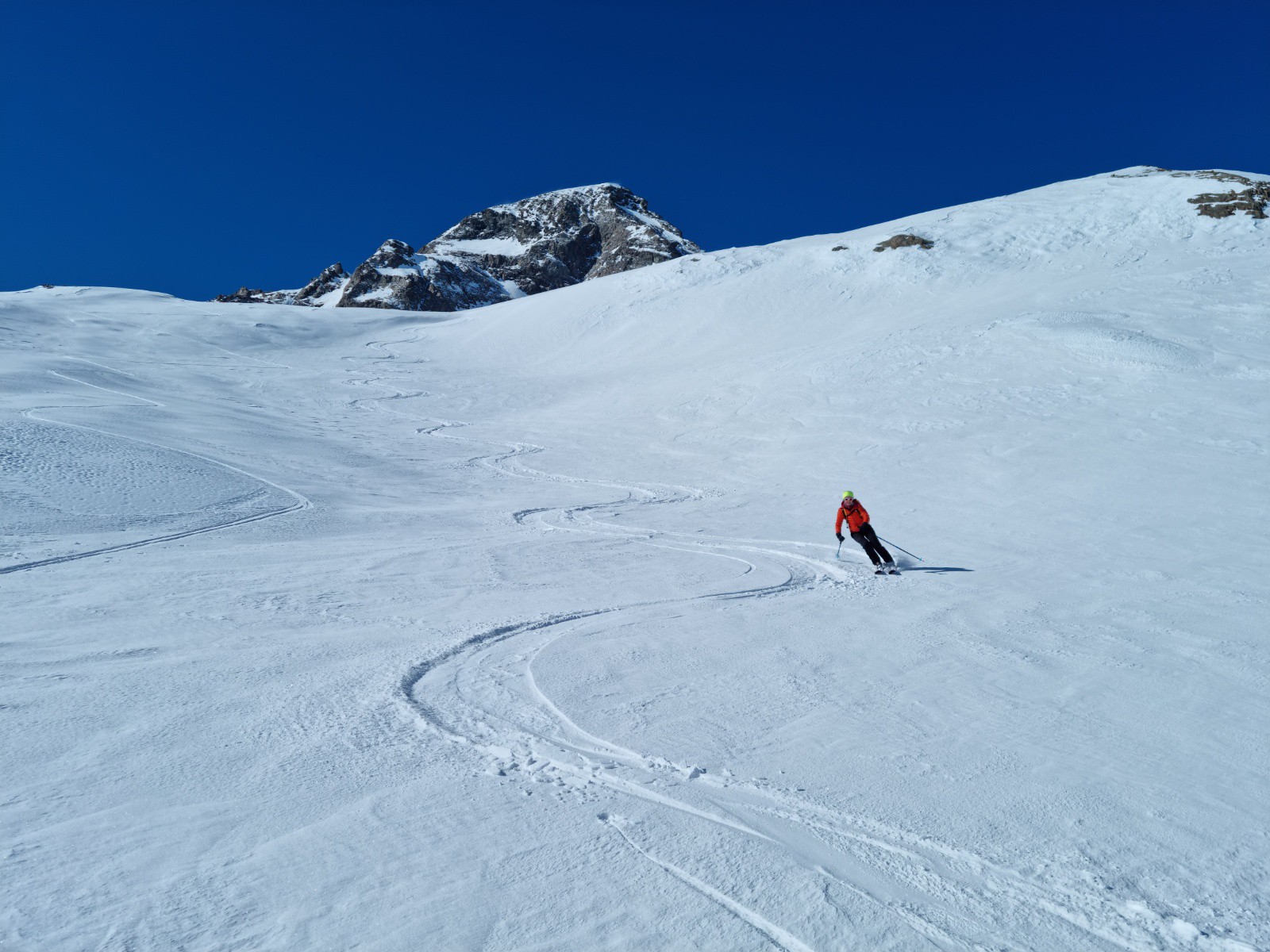 Conditions pour le ski :on s'attendait à trouver de la neige de printemps, c'est en définitive une petite couche de poudre (5 à 10 cm) sur fond dure qui nous a accueilli. Une bien bonne surprise en ces temps de disette ! itinéraire sauvage, contrastant avec la foule des grands jours sur la station.