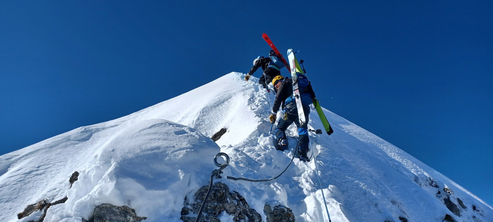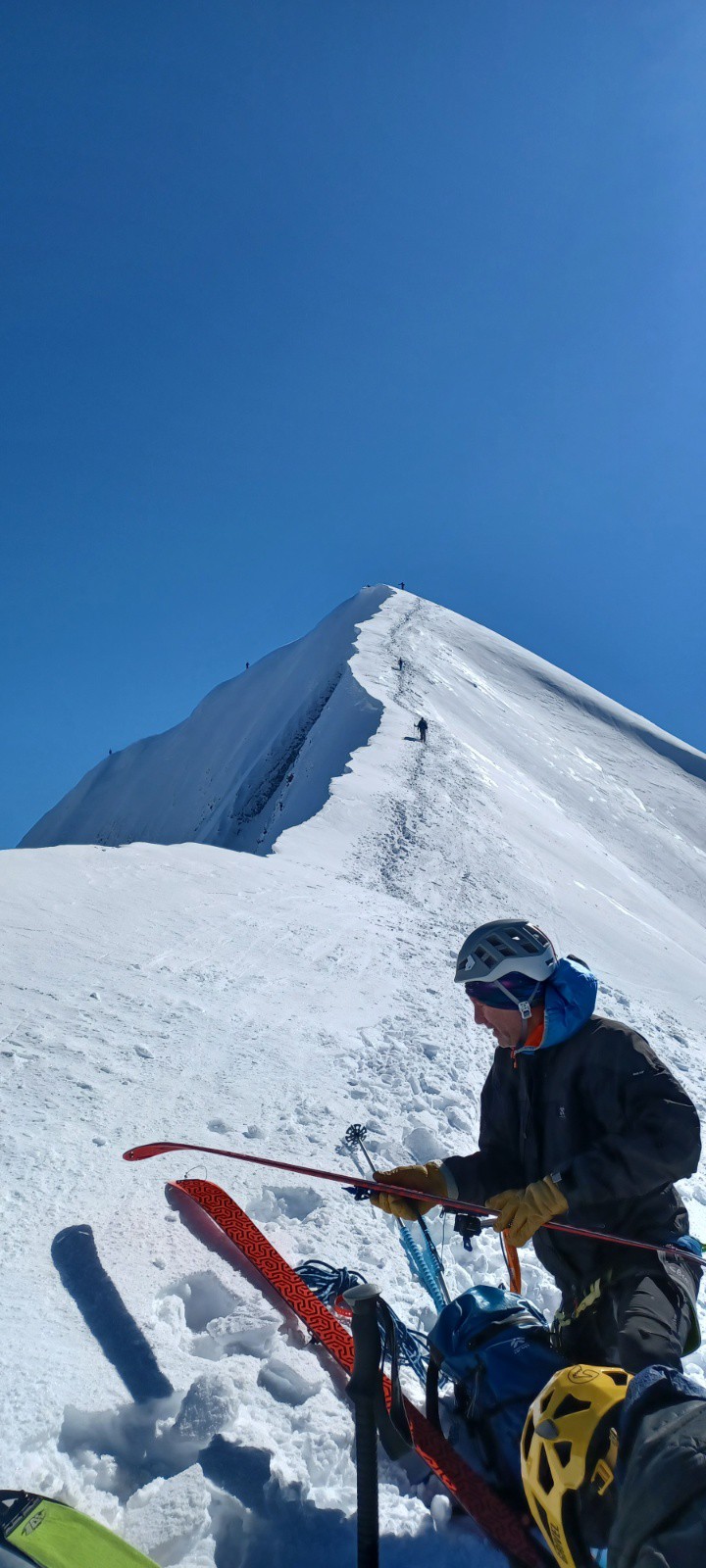 Conditions pour le ski : Bonnes conditions, la neige reste froide, l'arête se fait bien une fois passé le premier raidillon qui lui est bien croûté . La descente Ouest est agréable puis remonté aux Porthets au soleil. Descente 3,5 *
